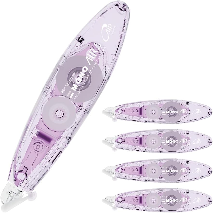 This pen-type correction tape is equipped with a new air touch stem, which can be erased from the start to the use of the "MONO AIR" mechanism. Introducing the trendy clear colors. Equipped with Air Touch System. Traditionally, resistance (torque) was required to cut the correction tape after transferring, but monoAir with a new mechanism air touch stem exhibits brake power only when cutting the correction tape. When pulled, it feels incredibly light and will last until it runs out. (Highly portable and economical) Slim shape that can be used like a writing instrument and cartridge type that is easy to replace. (Improved Tape for Adherence to Paper Surfaces) Even with light force, it will adhere to the surface of the paper, and has a new tape that is hard to chip even when overwriting. (Image Stabilization Head) Corrects shake even with light force, and helps guide the correct transfer angle to reduce transfer mistakes. Quiet Design: Eliminates annoying "clicking" sounds while in use.