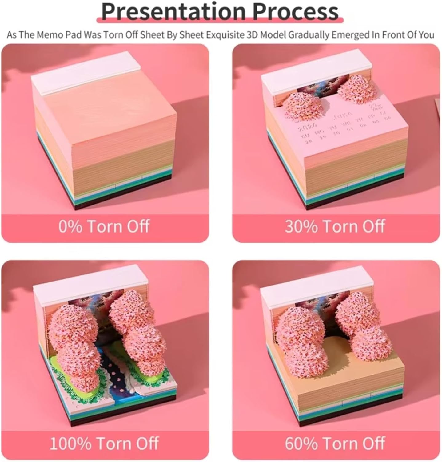 Product Name: 3D Paper Sculpture Memo Pad CalendarMaterial: Paper + Acrylic CoverColors: As shown in the pictureDimensions: As shown in the pictureNet Weight: 0.5/0.7 kgPackage Includes:1 x 3D Art CalendarFeatures:2026 3D Desk Calendar uses special high-quality paper, which is thick and three-dimensional and allows smooth writing3D Memo Pad uses engraving technology to create a layered three-dimensional scene, bringing a visual surprise experienceThe 3D Calendar base is equipped with a touch switch, which emits a soft glow, creating a warm and magical atmospherePut the finished paper sculpture model into a transparent acrylic box as a desktop decoration and collectionThis Artsy Pads is not only a calendar, but also can be used as a desktop decoration, bringing a lot of fun in tedious work