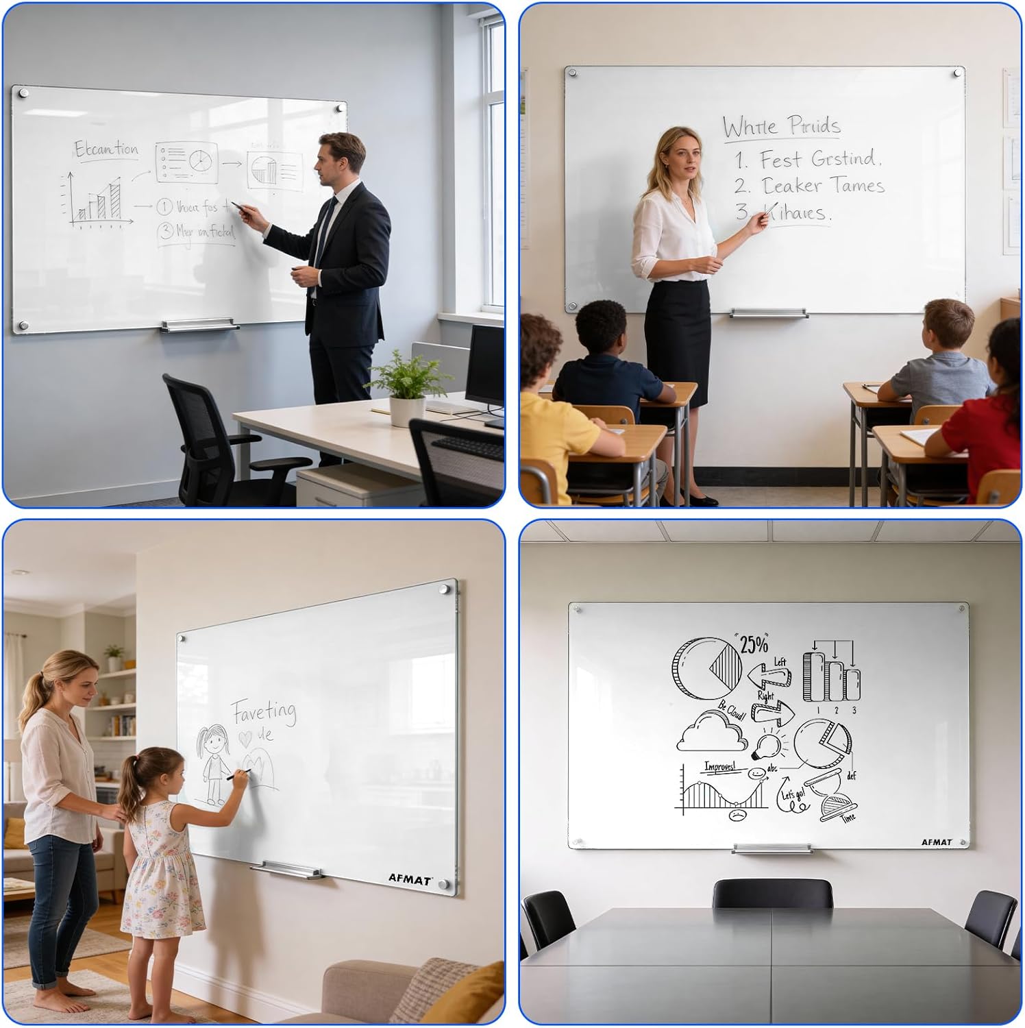 AFAMT Magnetic Dry Erase Board, 40" x 60" Magnetic Glass Whiteboard, 4mm Tempered Glass, Strong Magnetic Surface, No Ghosting, Large Frameless Mounted Glass White Board for Office, Home, School