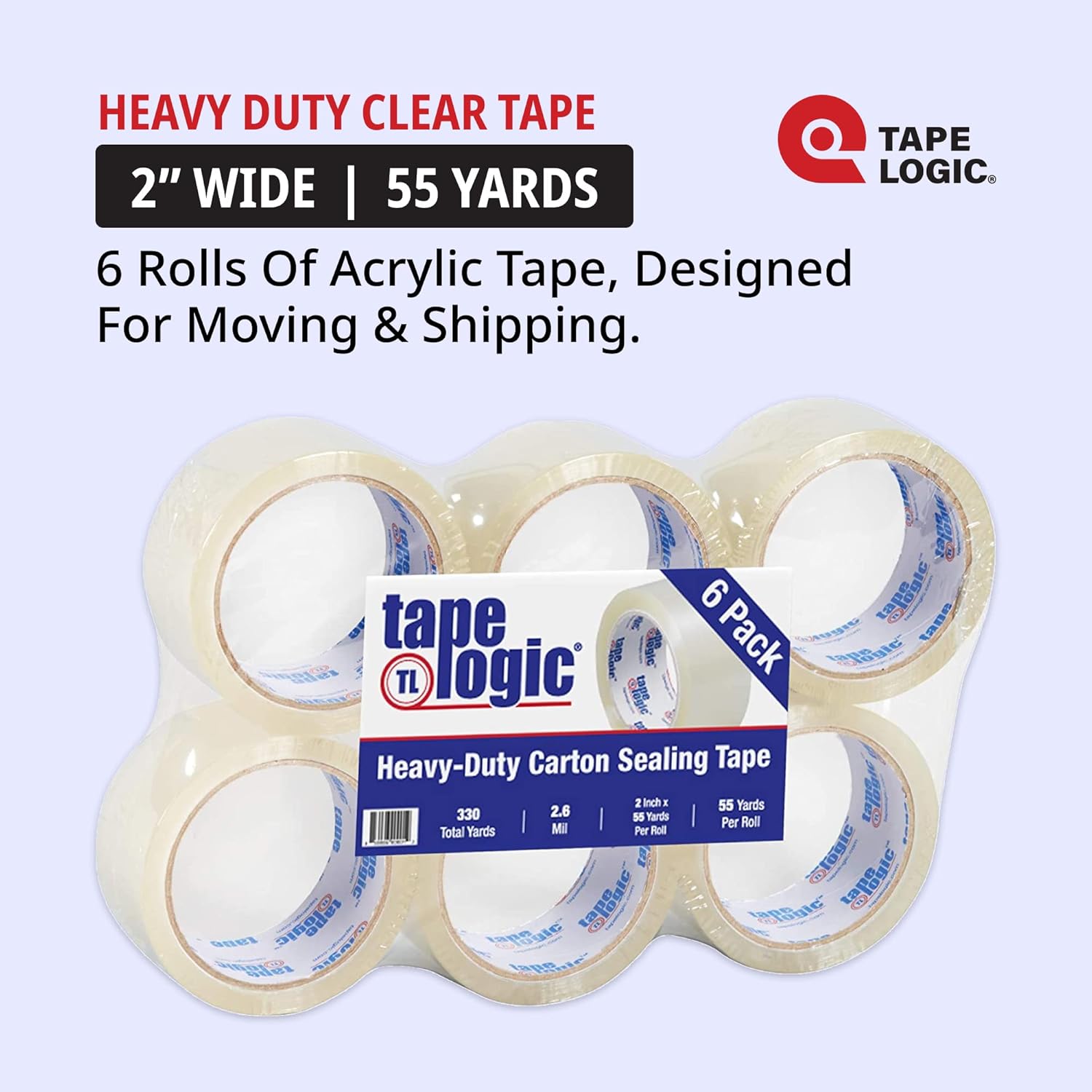Choose high quality Tape Logic® Carton Sealing Tape for all your packaging tape needs! Acrylic, Hot Melt, Natural Rubber, Cold Temperature, Long Yardage, Colors, Pre-Printed and more. Trust Tape Logic® to provide secure quality carton sealing every time. Available in full case and many in less than full case quantities. Check out the Aviditi store for a full selection of Tape Logic products!Tape Logic® Acrylic 291 Series is best for heavy-duty carton sealing applications with a 25 pound tensile strength.• Widths available: 2-3 inches• Yardage available: 55-110 yards• Colors available: clear and tanProduct SpecificationsEach roll measures 2 inches width by 55 yards length (165 feet per roll). Includes 6 rolls of tape equaling 330 yards of tape total (990 feet total). Meets UPS and U.S. postal regulations. Clear Tape Logic® Acrylic tape will not yellow and retains its clarity over long periods of time, best for long term storage when shelf life is important. Strong Acrylic adhesive gets stronger over time and grips well to all box types including recycled corrugated. Great for packing, shipping, moving, storage, home, and office. Consistent, smooth release. Standard 3 inch core compatible with most 2 inch hand held tape dispensers or cut tape with scissors. Heavy-Duty 2.6 Mil thick. Performs in a wide range of temperatures for shipping and storing in hot or cold temperatures. Application temperature range 32° - 140° F.