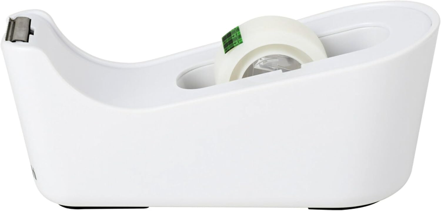 Scotch Magic Tape works as hard as you do to fix all the little imperfections at home, school and the office. The Scotch Brand's famous matte finish invisible tape uses unique 3M adhesive technology to bond tightly with paper and disappear without a trace. Write on it with pencil, pen or marker every word is loud and clear. The Scotch Classic Desktop Tape Dispenser is a great choice for one-handed dispensing in your home, office or school. This refillable dispenser fits a variety of tapes and has white finish. It holds standard, 1 in. core tapes and can hold tape width up to 3/4 in. wide by 1500 in. long. You can rely on Scotch Brand for a high qualify cutting blade to last for years as you continue to refill.