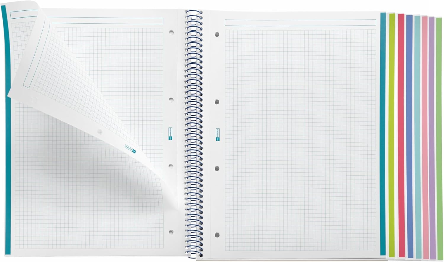 NB8 A4 160 CLA 90G PP EMOTIONS NAVY. Emotions Miquelrius A4 Notebook (210 x 297mm) Covers: Translucent polypropylene, lightweight and durable. Spiral: Continuous metal that allows the notebook to be opened flat in addition to turning it completely, and with coilock closure that prevents snags. Inner paper: extra opaque 90 g/m², prevents ink bleed through and dries quickly. Sheets: 160 sheets with 8 colour bands on the side (20 sheets per colour), ideal for sorting notes and using one colour for each subject; header for titles; micro-perforated for clean tearing and 4 holes for filing. Ruled: 5 mm grid.