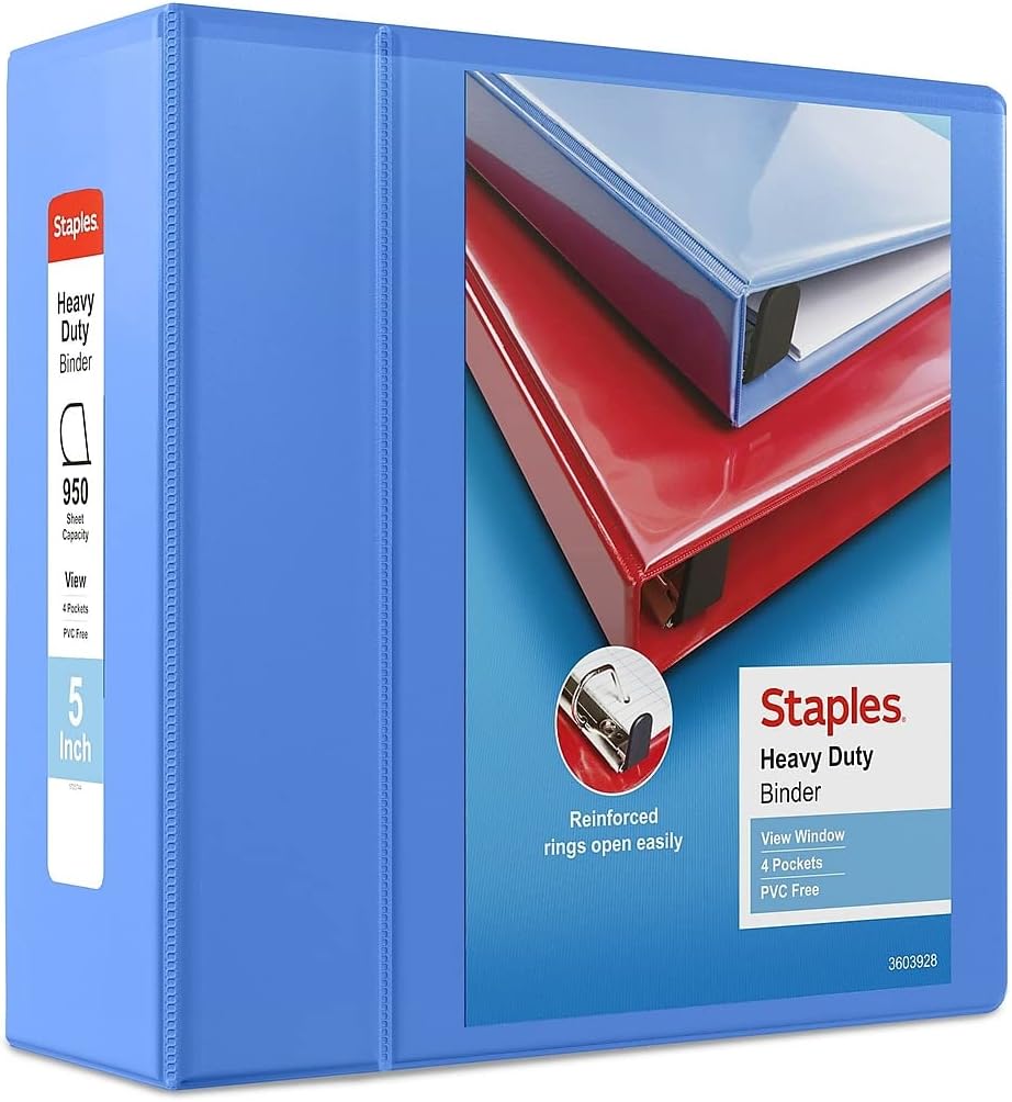 Staples Heavy‑Duty View Binder, 4" D‑Ring, Navy Blue, Reinforced Spine, High‑Capacity 3‑Ring Binder for School & Office Organization