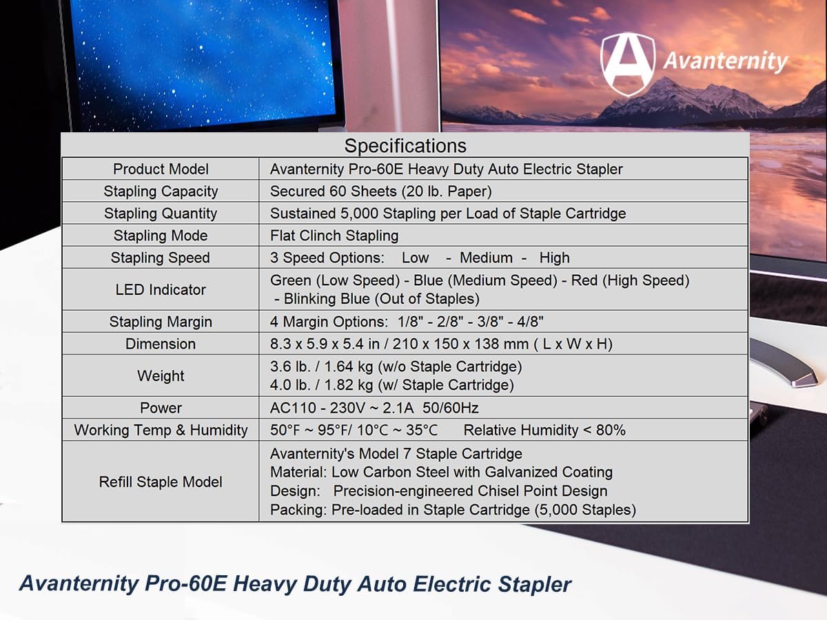 Avanternity's Pro-60E Heavy Duty Auto Electric Stapler (Value Kit) - Secured 60 Sheet Capacity, Includes 20,000 Staples