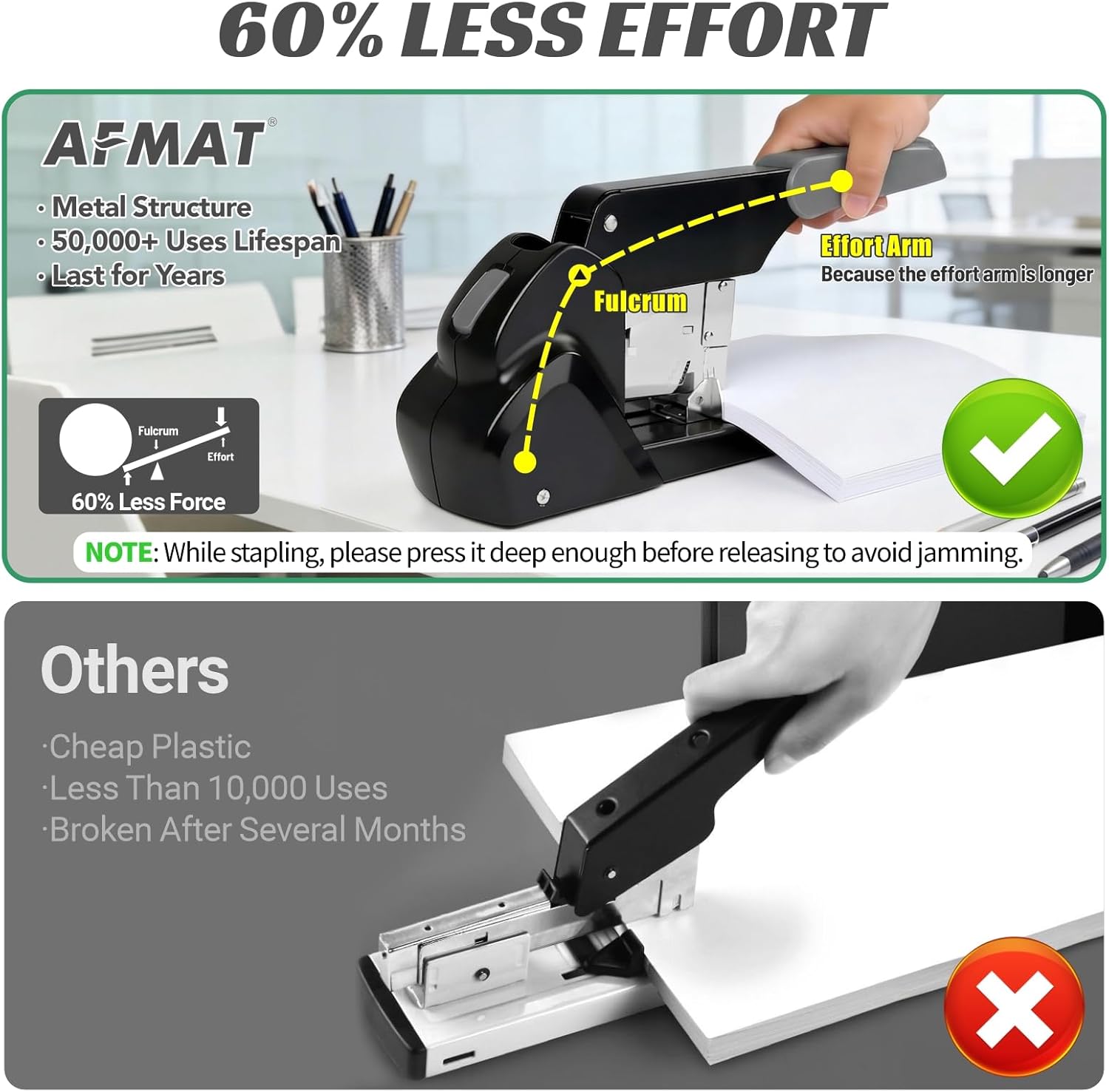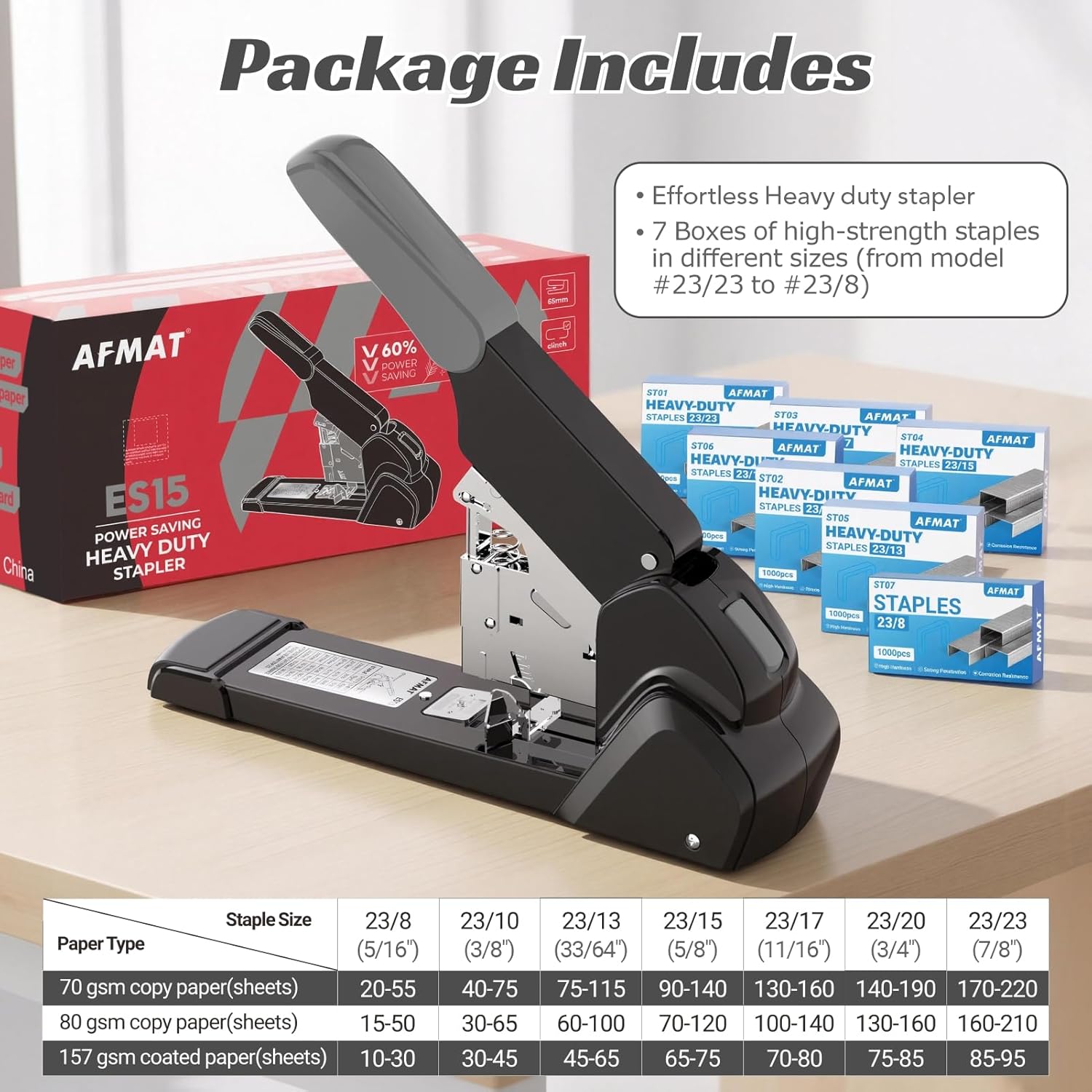 AFMAT Heavy Duty Stapler, 210 Sheet Effortless Stapler for Desk, 60% Reduced Effort, Jam Free, 50,000+ Uses, Adjustable Paper Depth, Metal Office Desktop Staplers, Includes 7000Pcs Staples, ES15