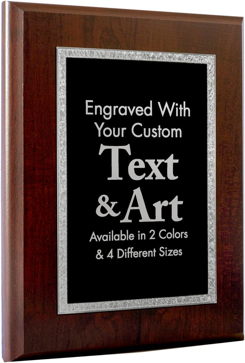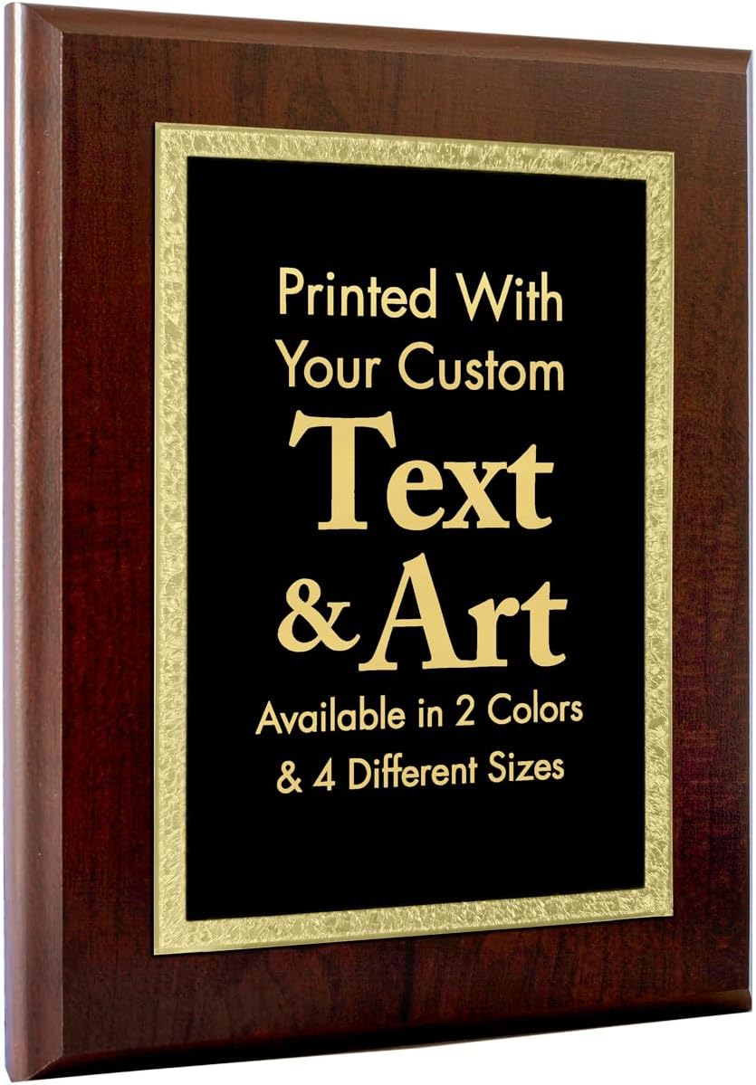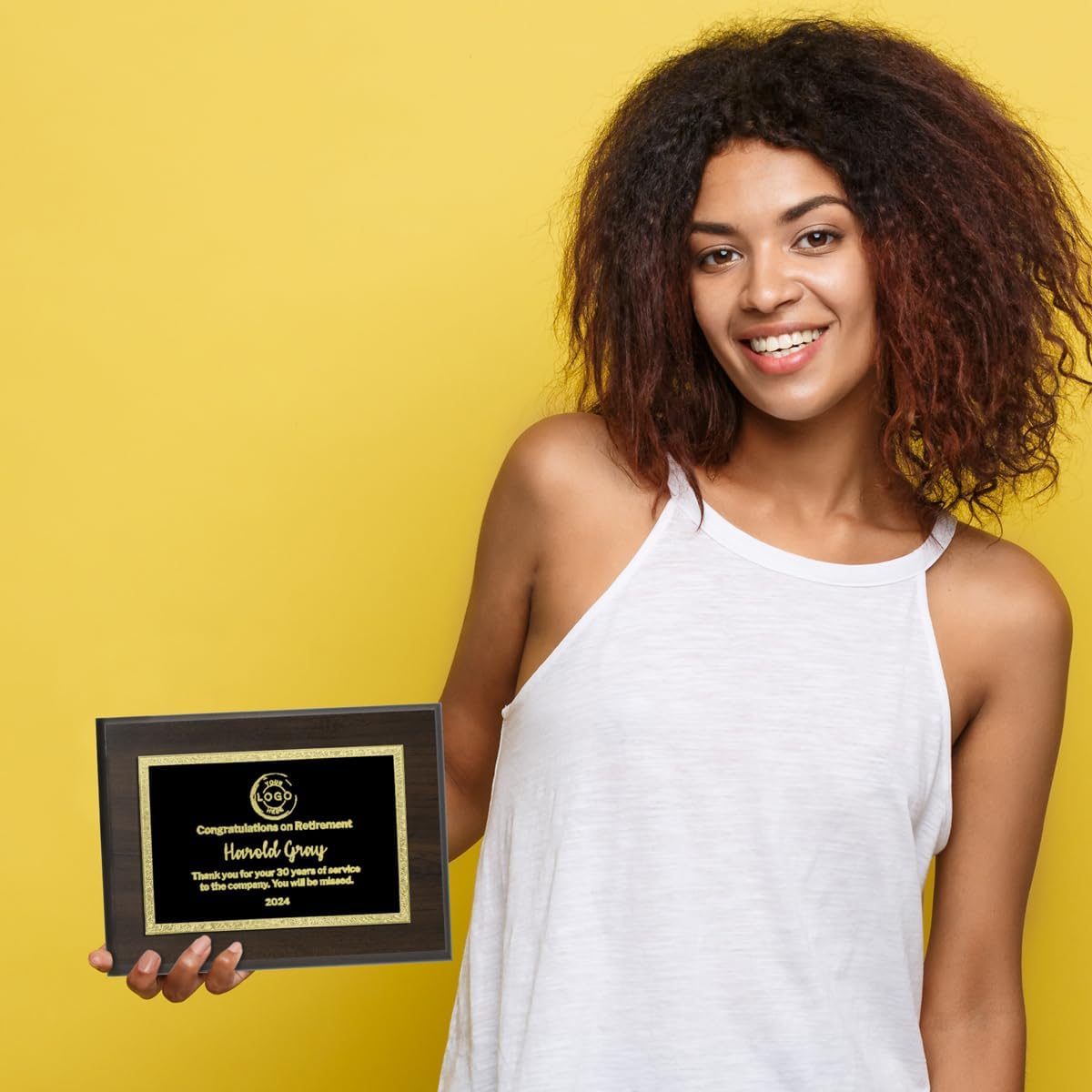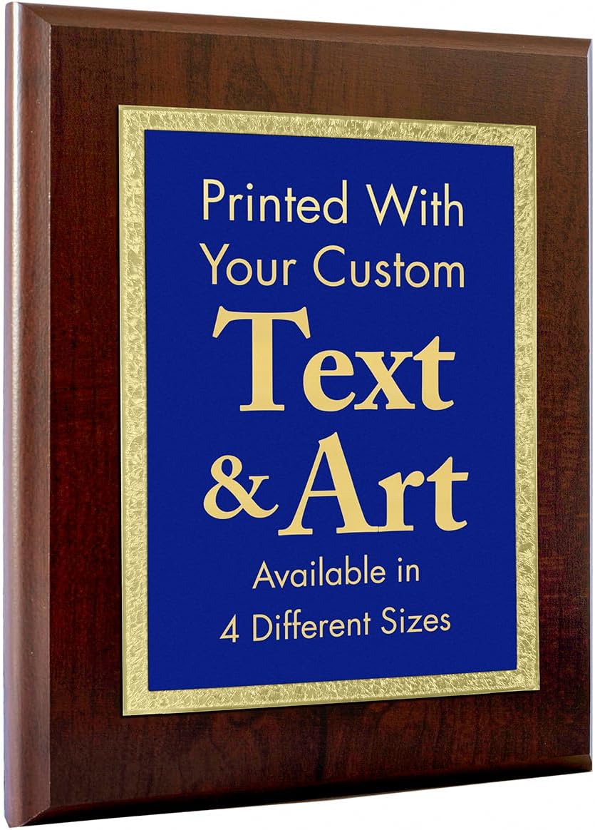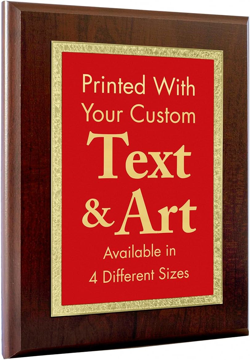 Make achievements truly memorable with this distinguished award plaque featuring an elegant wooden frame and striking gold border accent. Perfect for employee recognition, corporate awards, or special acknowledgments, this premium plaque offers a choice of rich red, classic black, or professional blue background colors that complement the sophisticated gold engraving. The high-quality wooden frame provides a timeless, professional appearance that will enhance any office or display setting. Fully customizable with your organization's text, message, and artwork, this plaque Is offered in a variety of sizes ideal for prominent display. The gold border detail adds a touch of prestige while complementing the custom engraved text. Whether for employee appreciation, service recognition, or special achievements, this plaque delivers a lasting impression that honors excellence and dedication. Each plaque is carefully crafted to ensure your custom text and artwork are beautifully showcased.