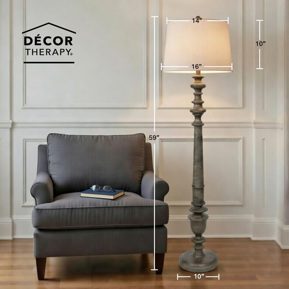 Bring classic charm and modern functionality to your living room or bedroom with the Decor Therapy Benjamin Floor Lamp in Gray. The neutral tone of this floor lamp blends in with a simple, yet modern décor, or a traditional decor to match its design style. The carved and stylish lamp base can be placed near a beautifully upholstered accent chair for a unique contrast or in a corner to brighten up a dark area. Easy Assembly, Exceptional Value: This lamp boasts a quick and easy setup with clear instructions. It offers exceptional quality at an affordable price, making it a smart investment for your home. Upgrade your space with style, functionality, and timeless elegance.