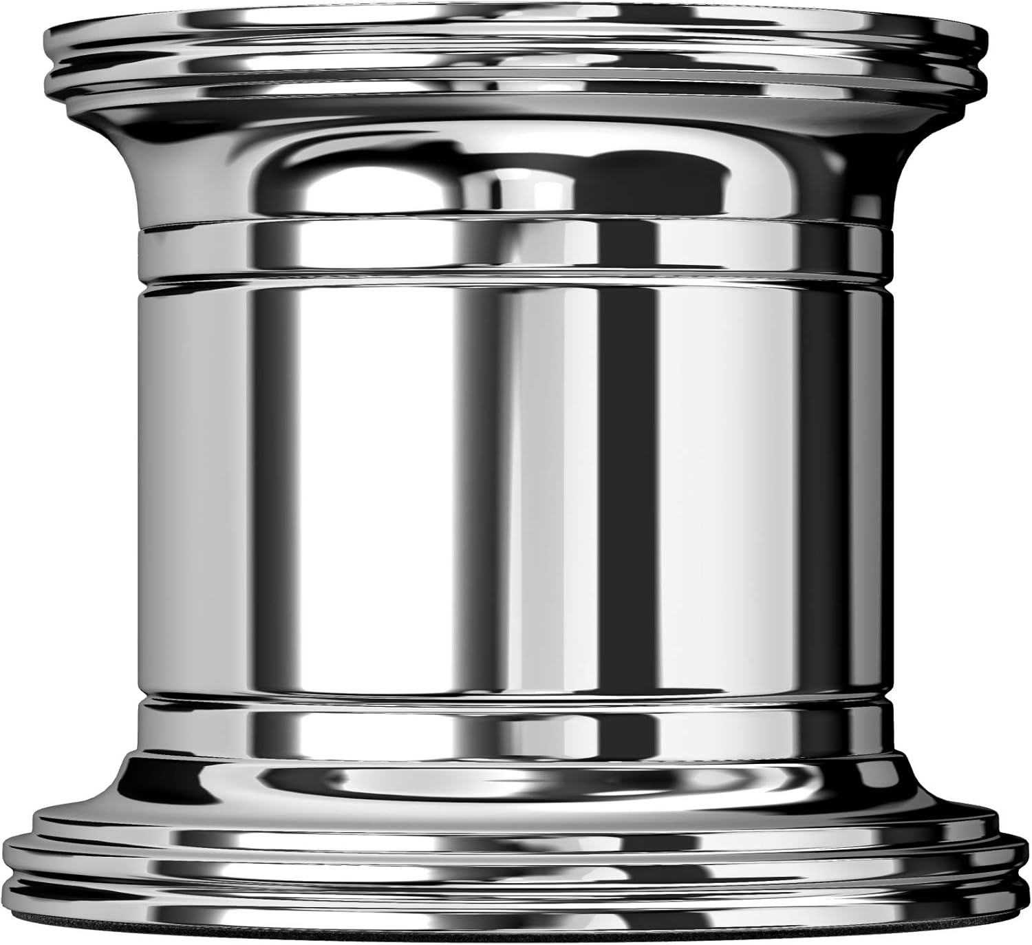 The elegant and practical accessory on any desk. Thanks to the magnetization on the inside, the dispenser always keeps the clips at hand. Underside with surface friendly felt. Dimensions: diameter approx. 5 cm. Height: approx. 5 cm. Chrome Plated