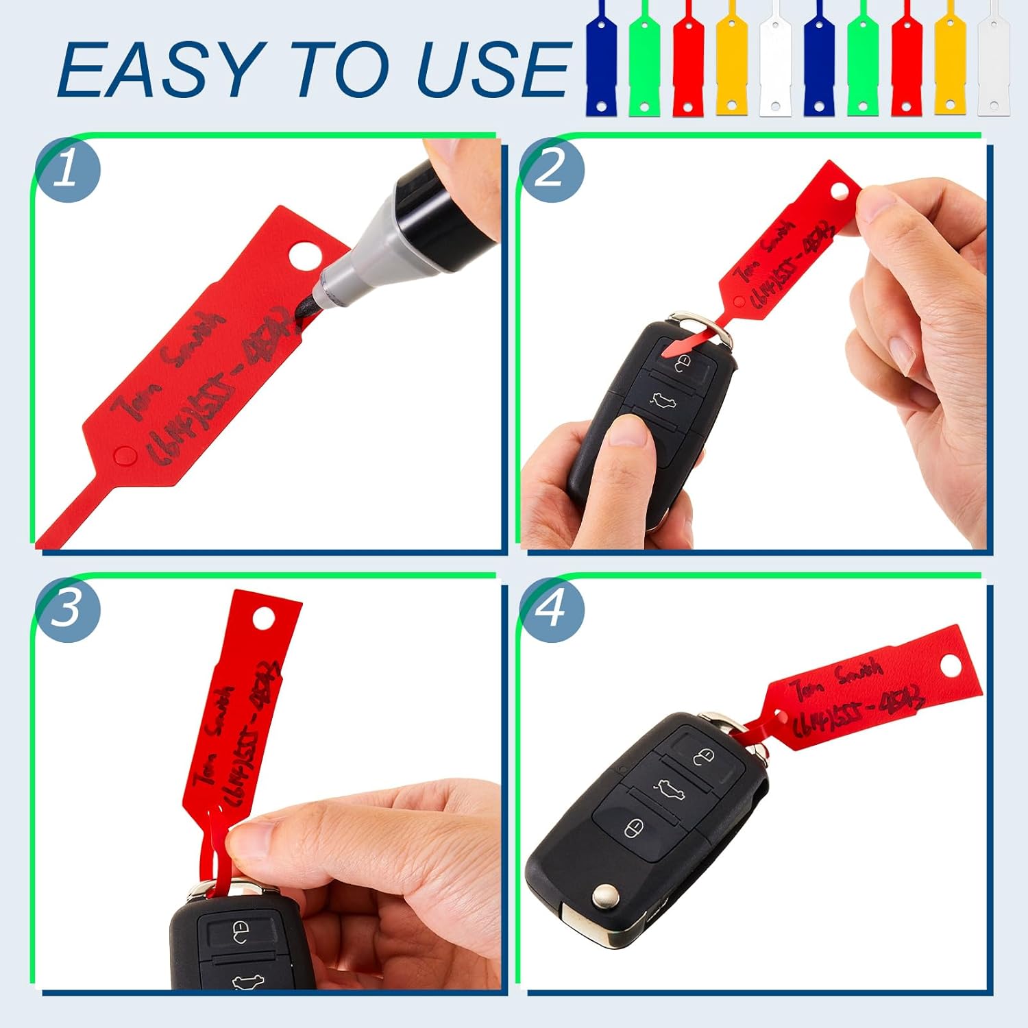 Features: In addition 5 Oil-based pens are included, 4 black and 1 white, which are convenient for us to record and are a nice match with labels. Specifications: Material: vinyl Color: multicolor Size: 11.5*1.9cm/4 1/2 inch x 3/4 inch Package includes: 4000 x Self locking arrow key tags 5 x Oil-based pens Notes: Manual measurement, please allow slight errors on size. The color may exist a slight difference due to different screen displays.