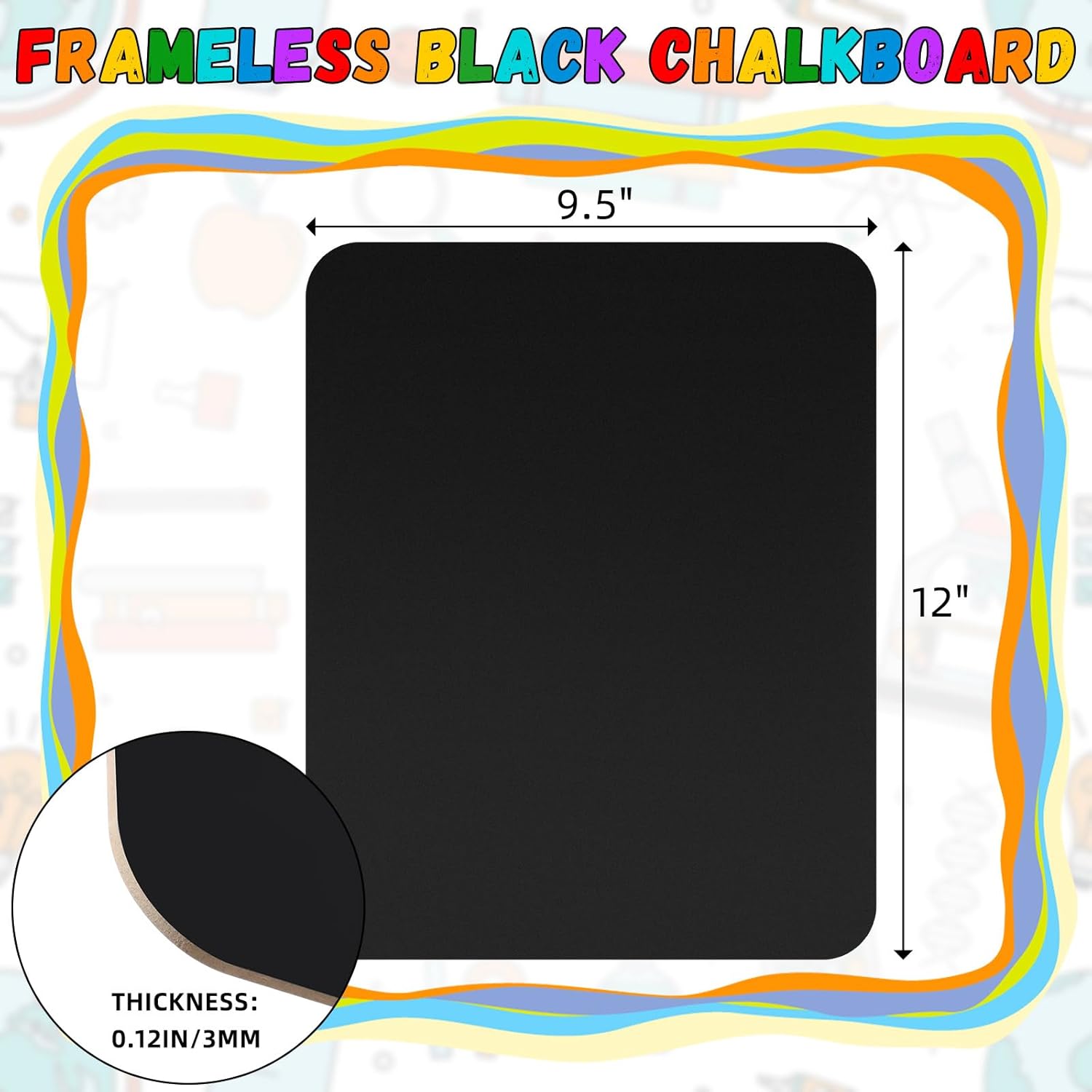 | Included Components | 6 x Frameless black chalkboard |
