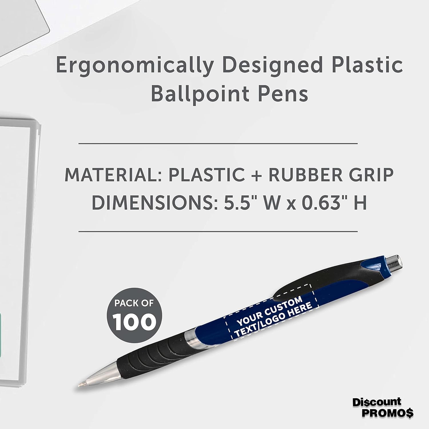 "These company pens were designed to stand out in a crowd with their attractive bright designs and large imprint areas. These items also have a strong appeal because of their unique features which include a quality grip area and a strong shirt clip. Available in variety of colors - White, Blue, and Navy Blue. Features: Ergonomically Designed Rubber Grip for Comfort Click to Write Feature "