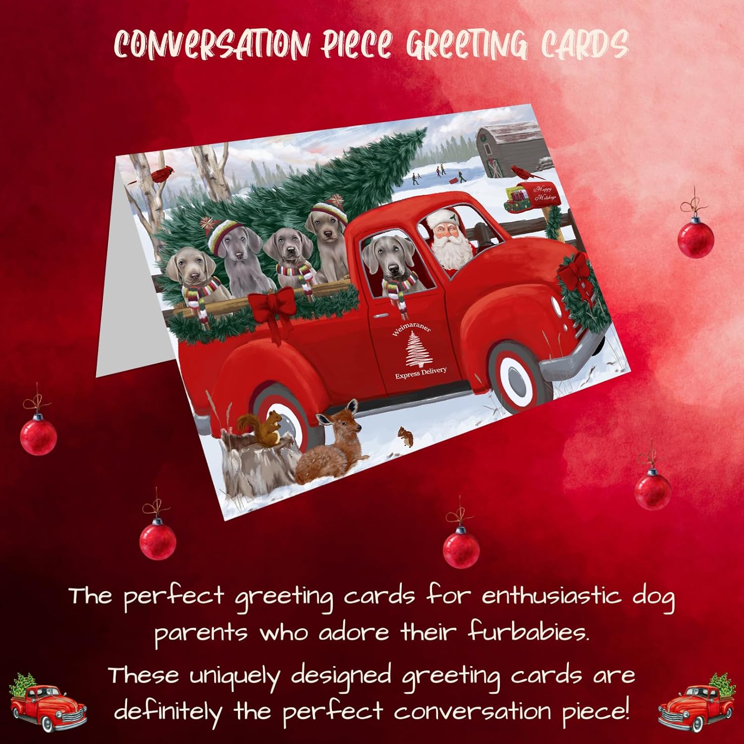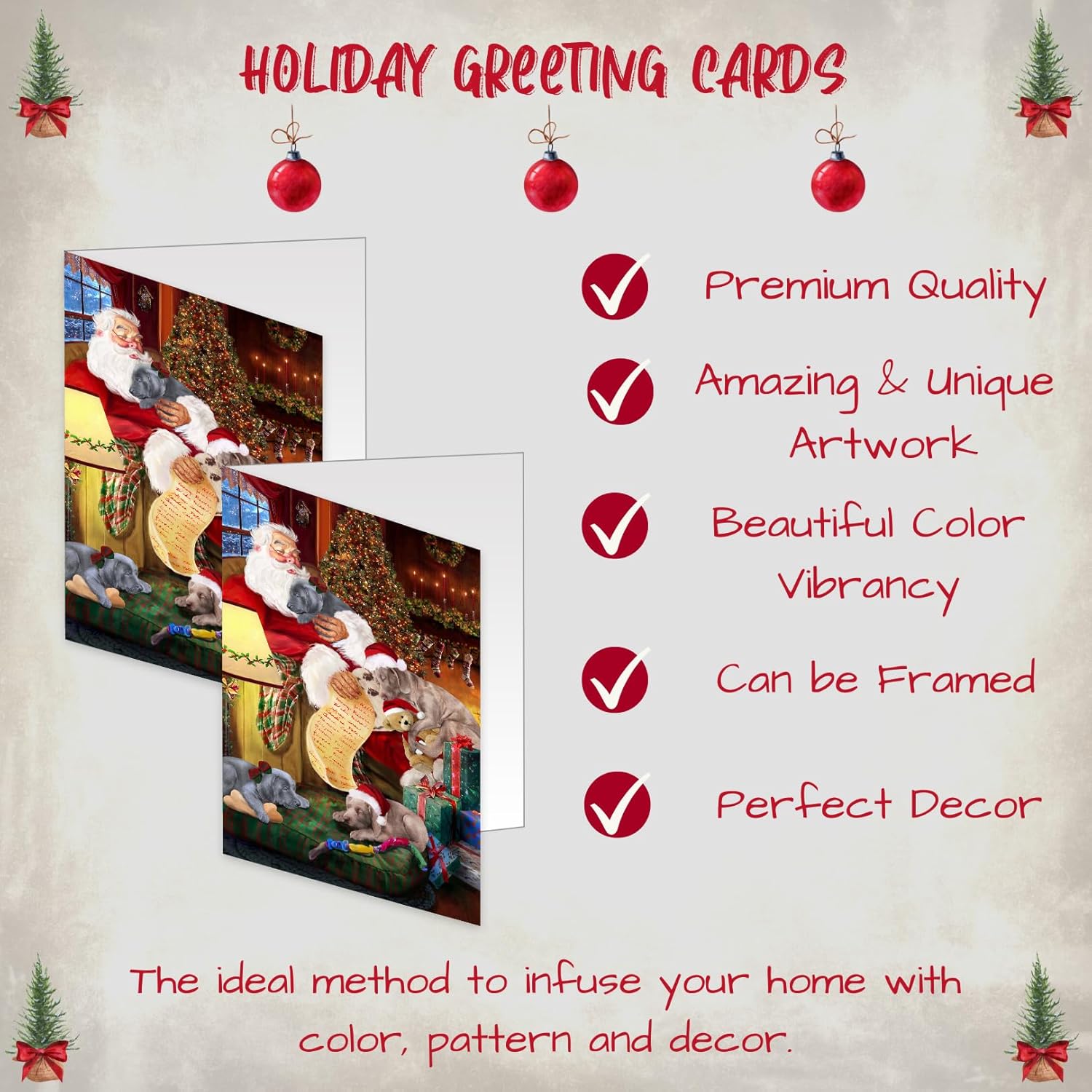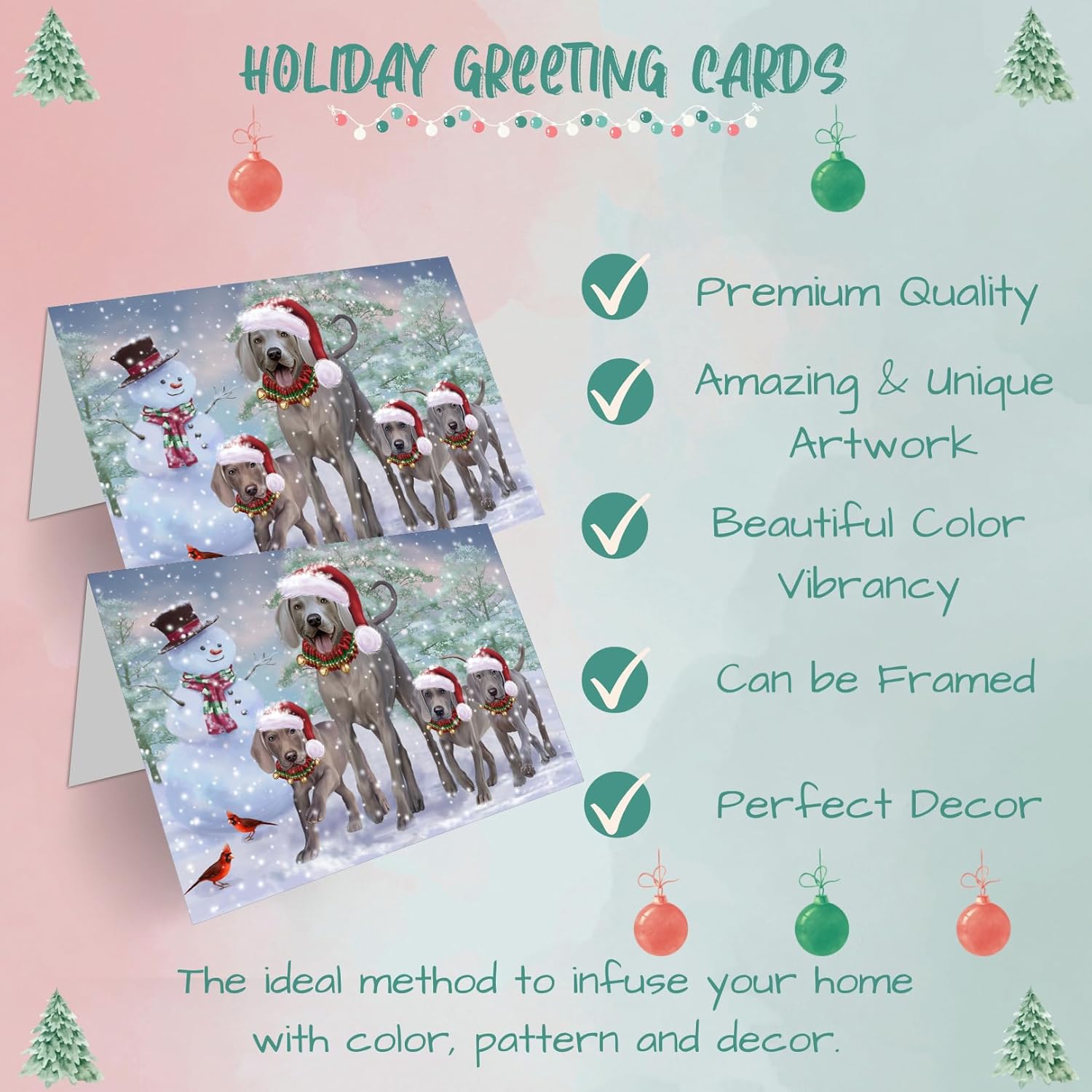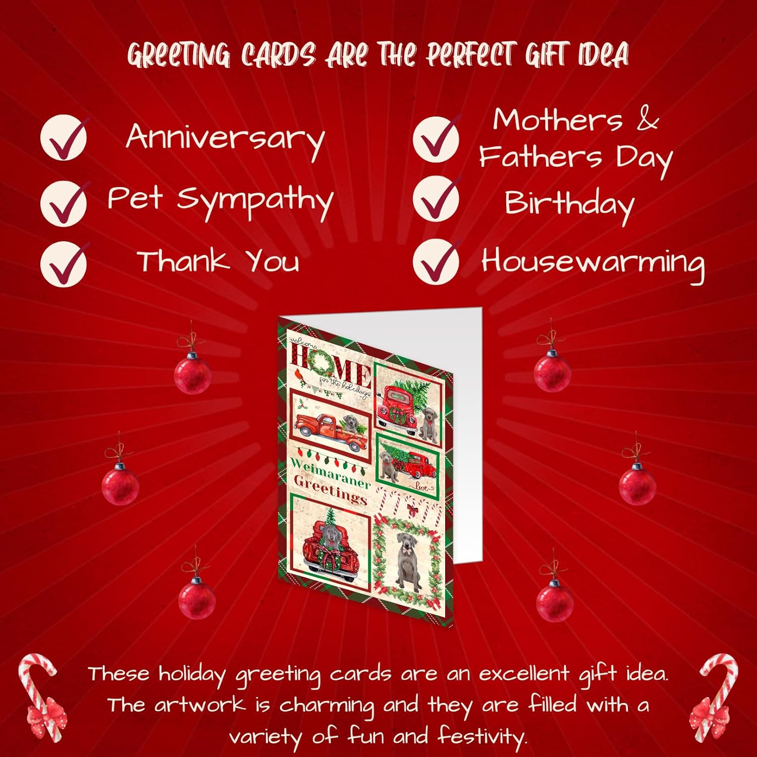 Introducing Our Dog Greeting Cards with Envelopes!Celebrate the holiday season with our exquisite Dog Christmas Cards. Crafted on premium, eco-friendly cardstock, these cards showcase vibrant colors and intricate details that truly make them stand out. Measuring at 5 x 7 inches for the Christmas greeting cards and 5.5 x 4 inches for the note cards, each set offers a variety of designs to suit all your festive needs.Inside the cards are blank, providing you with the perfect canvas to pen down your own personalized messages of gratitude and warm heartfelt sentiments to be sent out with love. Each card is accompanied by small envelopes, ensuring your holiday wishes are delivered in style.Key Features:• Stylish, vibrant designs that capture the spirit of the season.• Blank inside so you can write purposeful and meaningful messages. • Printed on high-quality paper stock for a luxurious feel.• Each Christmas card is paired with an envelope for a complete gifting experience.• Personalize and customize your messages anytime to add that extra personal touch.• Smooth, flawless surfaces inside every card for easy writing.• Suitable for a wide range of occasions, including Christmas, Mother’s Day, Father’s Day, and more.We take great pride in our dog-themed Christmas cards in bulk, and we're confident you'll love them just as much. However, if for any reason you're not completely satisfied with your purchase, please do not hesitate to contact us. We offer a full refund or replacement, ensuring your satisfaction is our top priority.Bring a touch of canine charm to your holiday cards greetings, and let your loved ones know you're thinking of them with our extraordinary Dog Greeting Cards.
