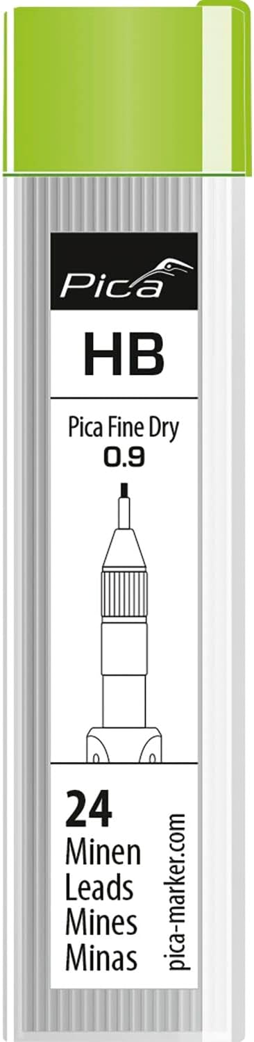 The Pica marker set contains the high-quality Pica Fine Dry 0.9 mechanical pencil, which is ideal for delicate and very precise marking. This sustainably refillable deep hole marker is equipped with an integrated large eraser and is ideal for marking and labelling on wood. The Pica Fine Dry impresses with its high-tech pressure mechanism, which allows automatic lead feed. The practical quiver protector with extra strong belt clip ensures comfortable transport. The set contains 24 refills in special hardness HB, which are perfect for very fine and precise markings and labelling. With a line width of only 0.9 mm, these leads allow the highest precision.