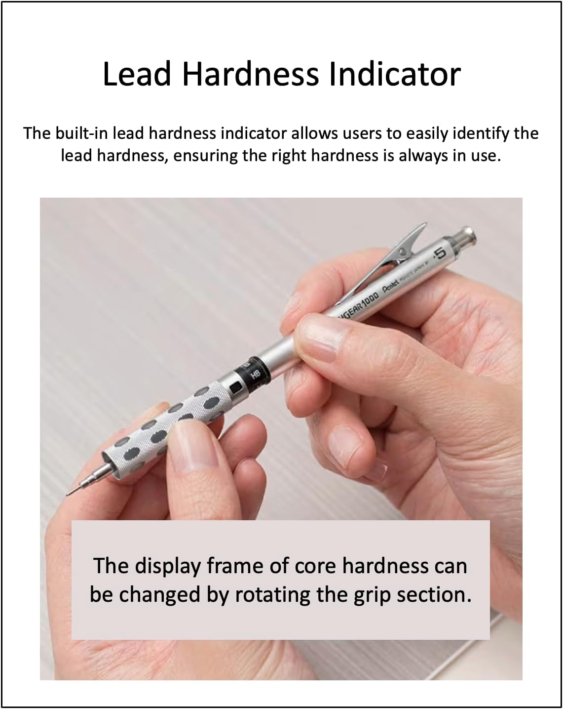 The Pentel GraphGear 1000 is a high-performance drafting pencil designed for professionals and enthusiasts alike. This product offers superior drawing precision and comfort, featuring a meticulously crafted design. Engineered for Precise Drawing : The GraphGear 1000 is perfect for artists and designers requiring high-precision drafting pencils. The 4mm fixed sleeve is ideal for use with templates and rulers, supporting precise line drawing. The pencil tip is protected by a dual-action retractor, which fully retracts the tip when not in use, preventing lead breakage. Comfortable Grip : The metal chassis, inlaid with soft, latex-free pads, ensures a comfortable and slip-resistant grip, even during extended use. This grip combines metal and rubber elements, providing a secure and comfortable hold. Variety of Lead Sizes and Colors : The GraphGear 1000 is available in four lead sizes: 0.3mm, 0.4mm, 0.5mm, 0.7mm, and 0.9mm, each color-coded for easy identification. This makes it simple to distinguish between pencils for different tasks. Additionally, it features a built-in lead hardness indicator, allowing users to easily identify the lead hardness and ensure they always use the correct hardness. High-Quality Materials and Durability : This pencil features a matte aluminum body, offering a smooth and sturdy feel. The lead used is Pentel's Super Hi-Polymer HB, which provides a writing experience equivalent to a wooden pencil. The lead is resistant to breakage and does not require sharpening. Special Features : The GraphGear 1000 employs a double-knock mechanism, which requires the nib unit to be extended before the lead can be advanced. This mechanism stabilizes the pencil during use, ensuring smooth writing. The pencil also includes a lead hardness indicator that users can set to their preference. The Pentel GraphGear 1000, with its superior grip, retractable tip, and color-coded size options, is an ideal tool for professional artists and designers. Its high durability and ease of use make it perfect for everyday sketching and precise drafting. Experience the exceptional performance of this drafting pencil today.