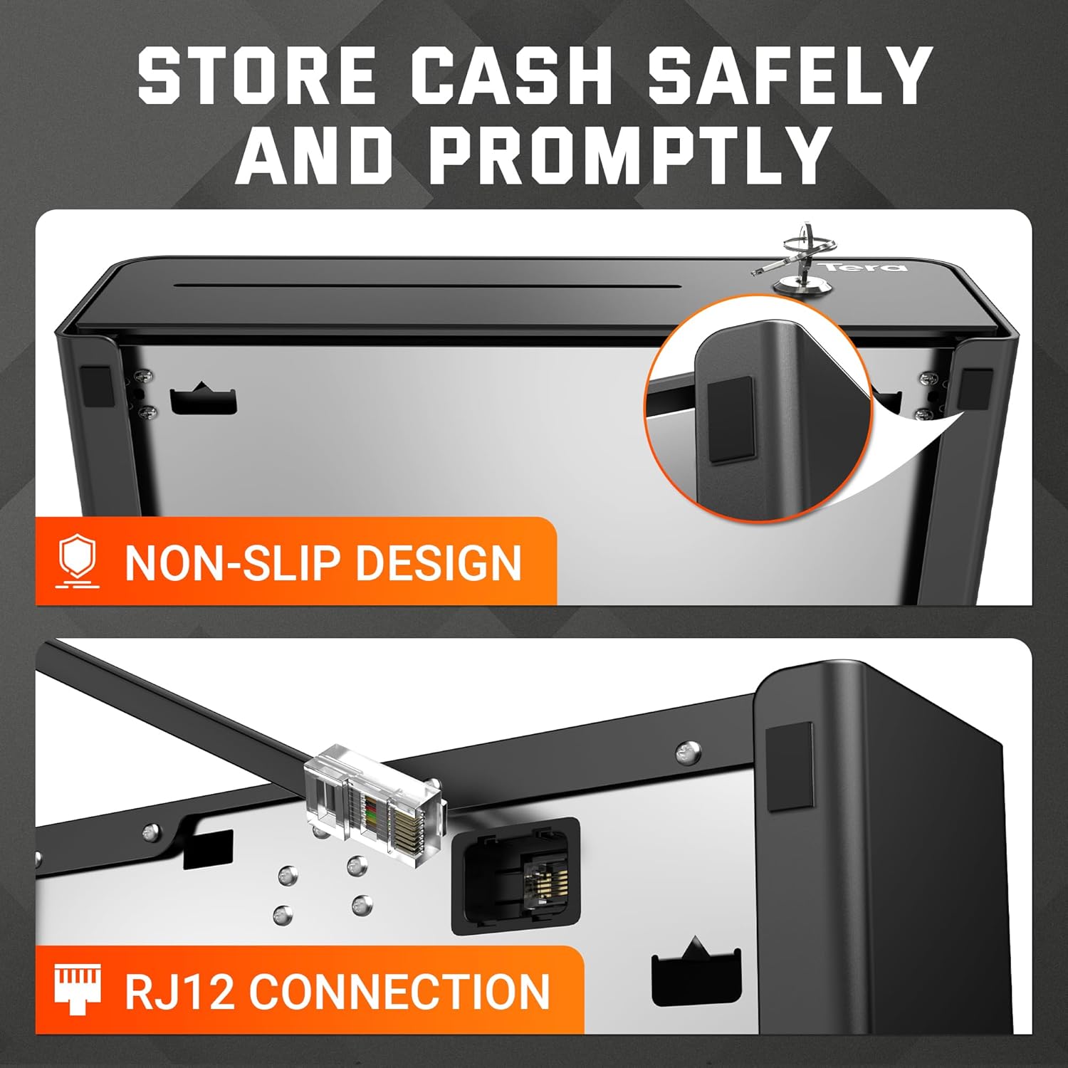 • EASY CONNECTION AND WIDE COMPATIBILITY: Easily connect the cash drawer to a receipt or thermal printer using the RJ12 cable provided in the package. Then, link the printer to your POS system for automatic opening and closing of the cash tray. Compatible with a wide range of leading receipt and thermal printer brands. Suitable for both home and commercial use, including department stores, supermarkets, drugstores, and more. Designed for indoor use only.