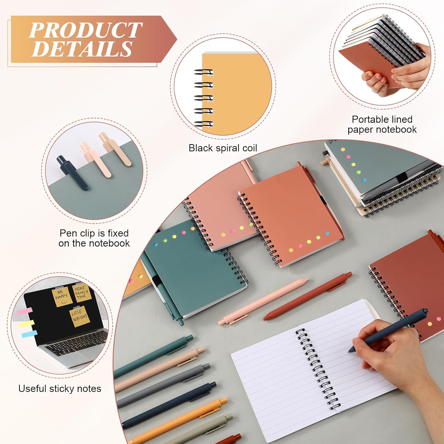 Features: Travel size: Our spiral notebooks are pocket size and measure approximately 4.1 x 5.3 inches, the ideal size for keeping at your desk or in your bag. Combination design: The combination of Kraft cover notebook and pens with colorful sticky note papers and tab flags gives you more choices. Adopting better materials, design sizes, and more pages brings you a better writing experience. Gift function: Pocket sized notebooks are very practical and can meet your daily diary and note taking needs, making them idea for gift-giving for your employees, students, classmates, teachers, volunteers, nurses. Specifications: Material: 300 GSM Kraft, offset paper, rubber Color: multicolor Size: Notebooks: approx. 4.1 x 5.3 inches/ 10.4 x 13.5 cm Sticky notes: approx. 2 x 2.95 inches/ 5.1 x 7.5 cm Page marker: approx. 1.97 x 0.6 inches/ 5 x 1.5 cm Pen shell: approx. 5.51 x 0.43 inches/ 14 x 1.1 cm Package includes: 20 x Small spiral notebook 20 x ballpoint pen Notes: Manual measurement, please allow slight errors on size. The color may exist a slight difference due to different screen displays.