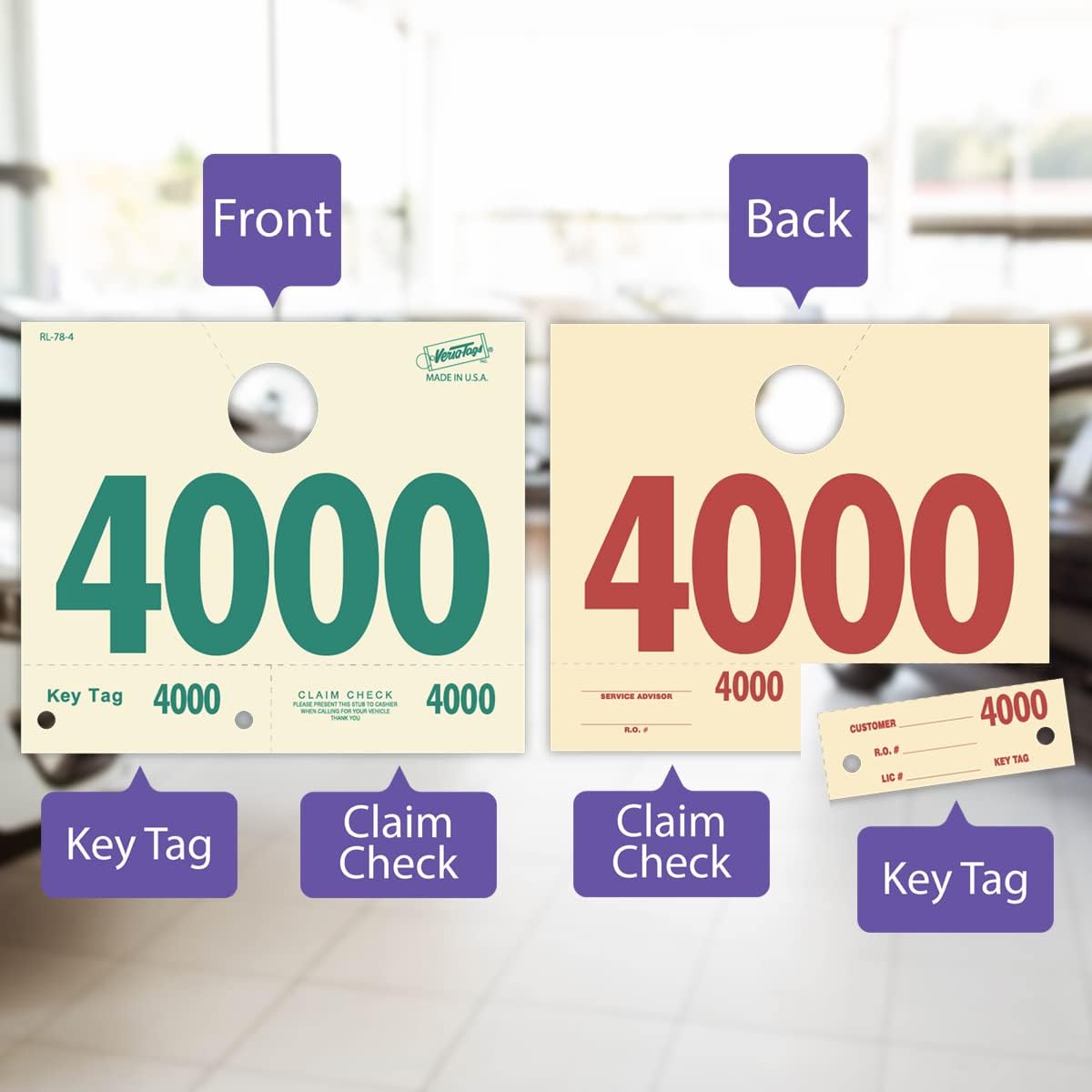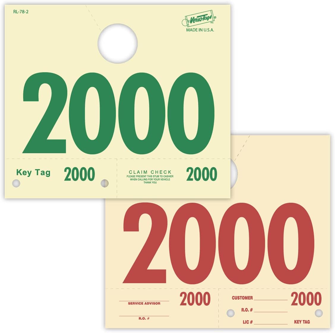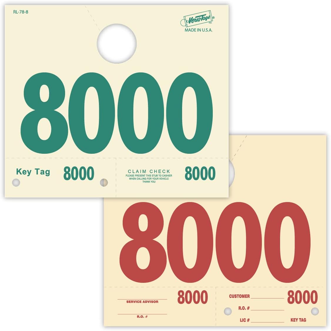 Looking to streamline your service department? Our American made service numbered hang tags are just what you need! These three part system tags include a rearview mirror hang tag, service claim ticket, and key tag with a hole to loop the keys on. They're perfect for busy repair shops who need to keep track of service claims and keys quickly and easily. Plus, the numbered system ensures that each tag is accounted for. Whether you're just getting started in the business or you're looking to improve your service department's efficiency, these hang tags are a great solution. When it comes to service dispatch numbered hang tags, Versa hang tags are the leading manufacturer. With every order, you receive 20 packs of 50 service hang tags for a total of 1,000 pre-numbered tags. What sets these hang tags apart is that they are made of durable cardstock in addition the numbering is clear and easy to read, so you can quickly identify the tag you need. Whether you're managing a fleet of vehicles or a small repair shop, Versa hang tags can help you keep track of your customers keys and ensure that everyone is on the same page. Order your set today and see for yourself why Versa is the leading choice for service dispatch numbered hang tags.