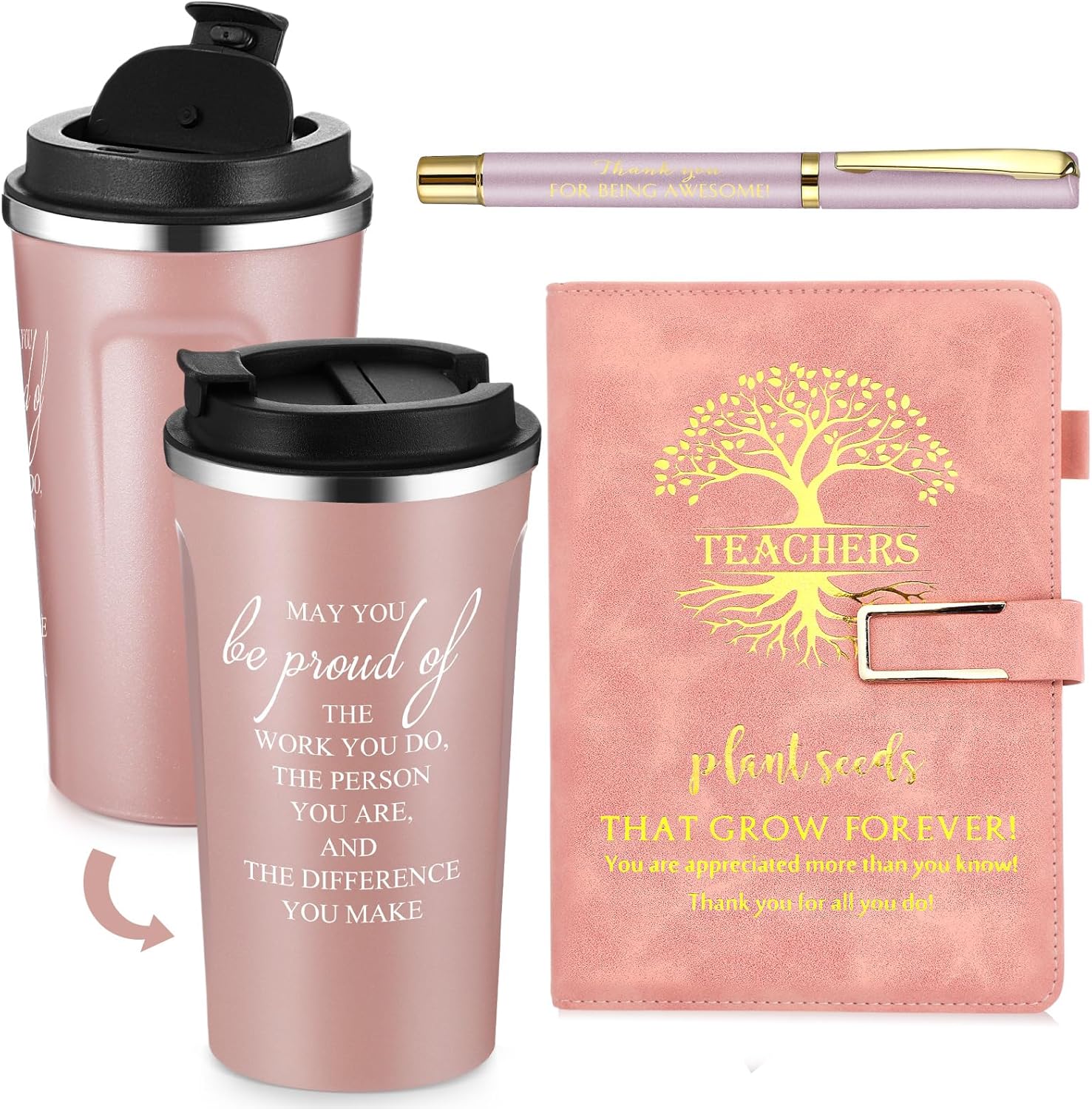 Features: 17Oz coffee mug is ideal for any hot or iced beverage such as coffee, cola, milk, tea, juice and can keep it warm/cold for a long time, Muti-color to choose from, portable size for home use, trip, to work carrying coffee Crafted with quality materials, this gift set is built to withstand daily use and last for years. This set can be given as an award or included as part of a larger employee gifts, making it a ideal option for various appreciation initiatives. Specifications: Material: stainless steel, leather, paper, plastic Color: multicolor Size: Journal: 8.27 x 5.51 inches Pen: 5.5 inch Tumbler: 17 oz Package includes: 4 x Coffee Tumbler 4 x Leather Journal 4 x Pen Notes: Manual measurement, please allow slight errors on size. The color may exist a slight difference due to different screen displays. Not recommended for use in the dishwasher
