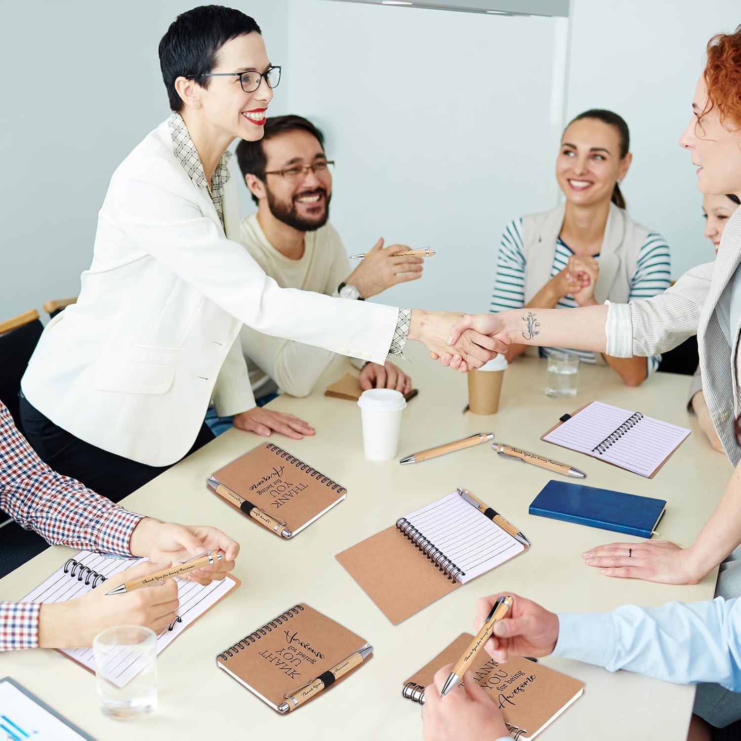 80 Pcs Employee Appreciation Gifts Inspirational Spiral Notebooks Bulk Motivational Journals Thank You Bamboo Ballpoint Pens for Nurse Teacher Coworker Features: Thank You Themes: These employee motivational gifts are inscribed with appreciation quotes, encourage people through difficult times and help develop a positive attitude, make them sweet gifts for Thanksgiving. Appreciation Gifts: These thank you notebook and pens can be given as gifts for Thanksgiving, Teacher's Day to employees, women, friends, colleagues, teachers, students, appreciation to express your encouragement. Specifications: Color: as pictures shown Material: Paper Size: Spiral Notebook: 4.09 x 5.31 inches/ 10.4 x 13.5 cm Ballpoint Pen: 5.35 x 0.43 inches/ 13.6 x 1.1 cm Package includes: 40 x Inspirational Spiral Notebooks 40 x Thank you Ballpoint Pens Note: The colors may exist slight difference due to different screens. Manual measurement, please allow slight errors on size.