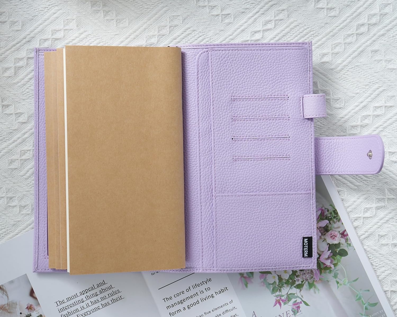 Moterm Companion Traveler's Notebook Cover - Upgraded Design with Back Pocket Features: 1. Be inspired to travel with the Moterm traveler's notebook, where you can record precious memories from your journeys. Easy to hold in your hand, it's the perfect size to bring along for you to write thoughts and observations from your trips. You can carry maps, tickets, cards and other travel essentials in the notebook. 2. It has a flexible design, it has two clasps. The extra clasp allows for a little more length in the strap to allow for planner growth. If you use the second clasp, the strap will cover the first clasp. Inside: 1. Compartments and many card slots for several business and/or credit cards; 2. A large back pocket for bills or papers. Side pockets for storing papers; 3. Leather penloop with elastic; Package contains: Traveler's Notebook cover 3 different refillable inserts (Unlined, Lined, Grid) 1 x Repair Elastic band