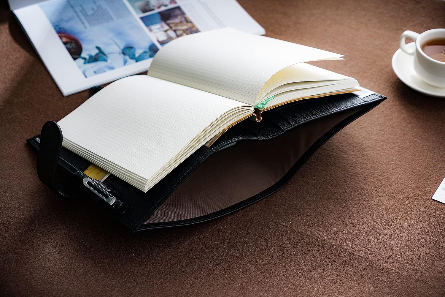 Moterm Leather Cover for A5 Notebooks - Fits Hobonichi, Stalogy and Midori MD A5 Notebooks. Features: This planner cover is perfect for dressing up your hobonichi, midori, stalogy or any other standard A5 sized notebooks. Also a durable protection for your notebooks. This hobo cover can help you avoid getting damaged of being frequently taken in and out of the bag, getting scratched and torn. Elegant design: The cover contains two bookmarks with rectangle charm, so you can keep your place in two parts of the planner, such as the monthly calendar and the daily page. Each cover has a built-in pen loop and side pockets to store stickers, washi samples, and more. Size: This notebook cover is made for A5 notebooks with a size of 148mm x 210mm (5.8"x 8.3"). But it can't house Hobonichi 5-year techo a5 notebook. Package includes: Only the leather cover.