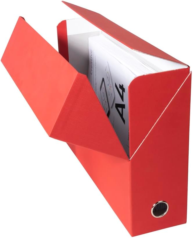 Made of rigid cardboard covered with tinted canvas paper, this transfer box is very practical for neatly archiving all large files. Reinforced lid keeps the box tightly closed. Metal grip eyelet for easy grip. Delivered fully assembled. 90 mm spine. Dimensions: 25.5 x 34 x 9 cm. For A4 format. Made in France. The transfer boxes are sturdy, thick. They offer a large filing capacity of up to 1000 sheets and therefore allow for stylish storage and archiving.