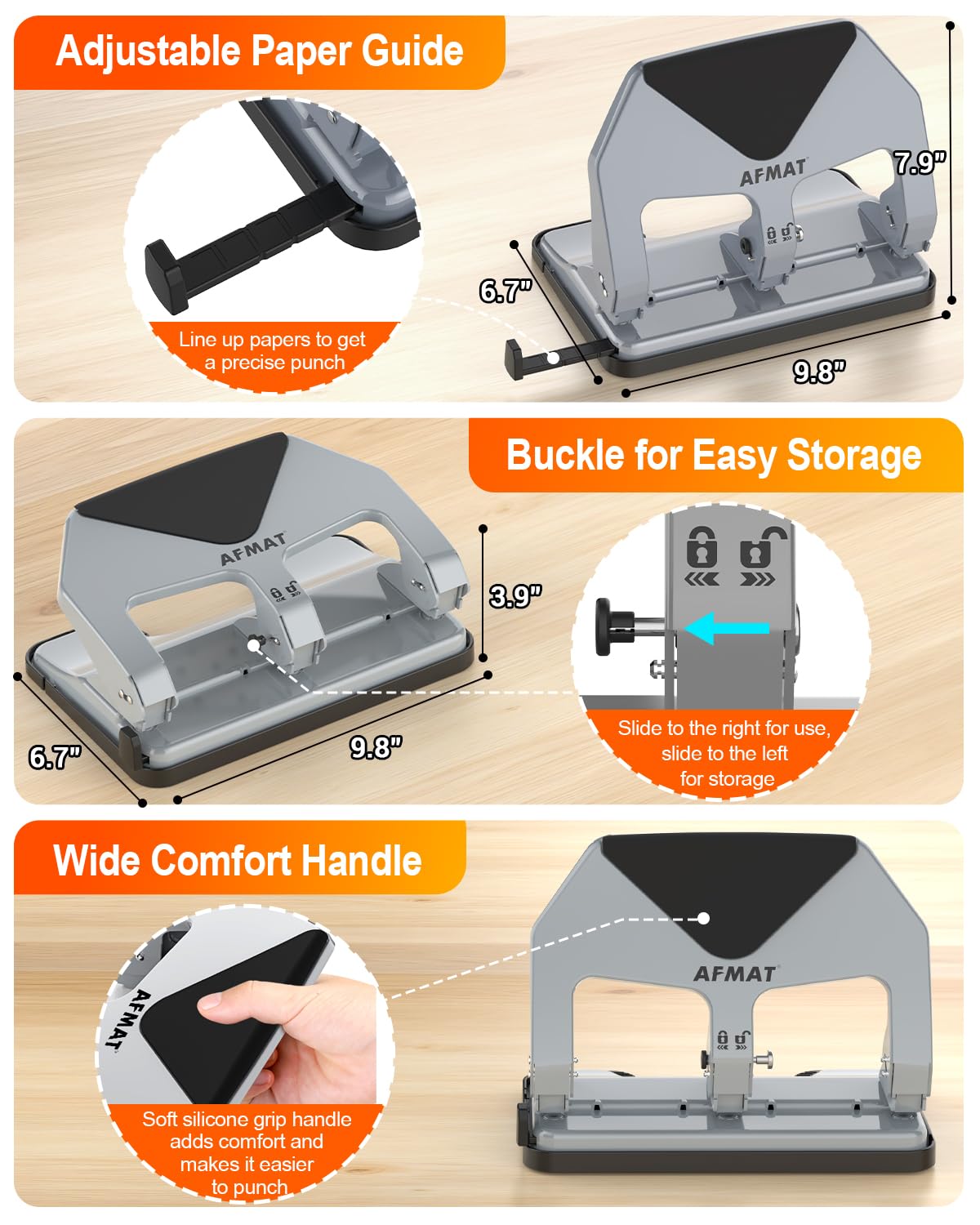 AFMAT Heavy Duty 3 Hole Punch, Gray