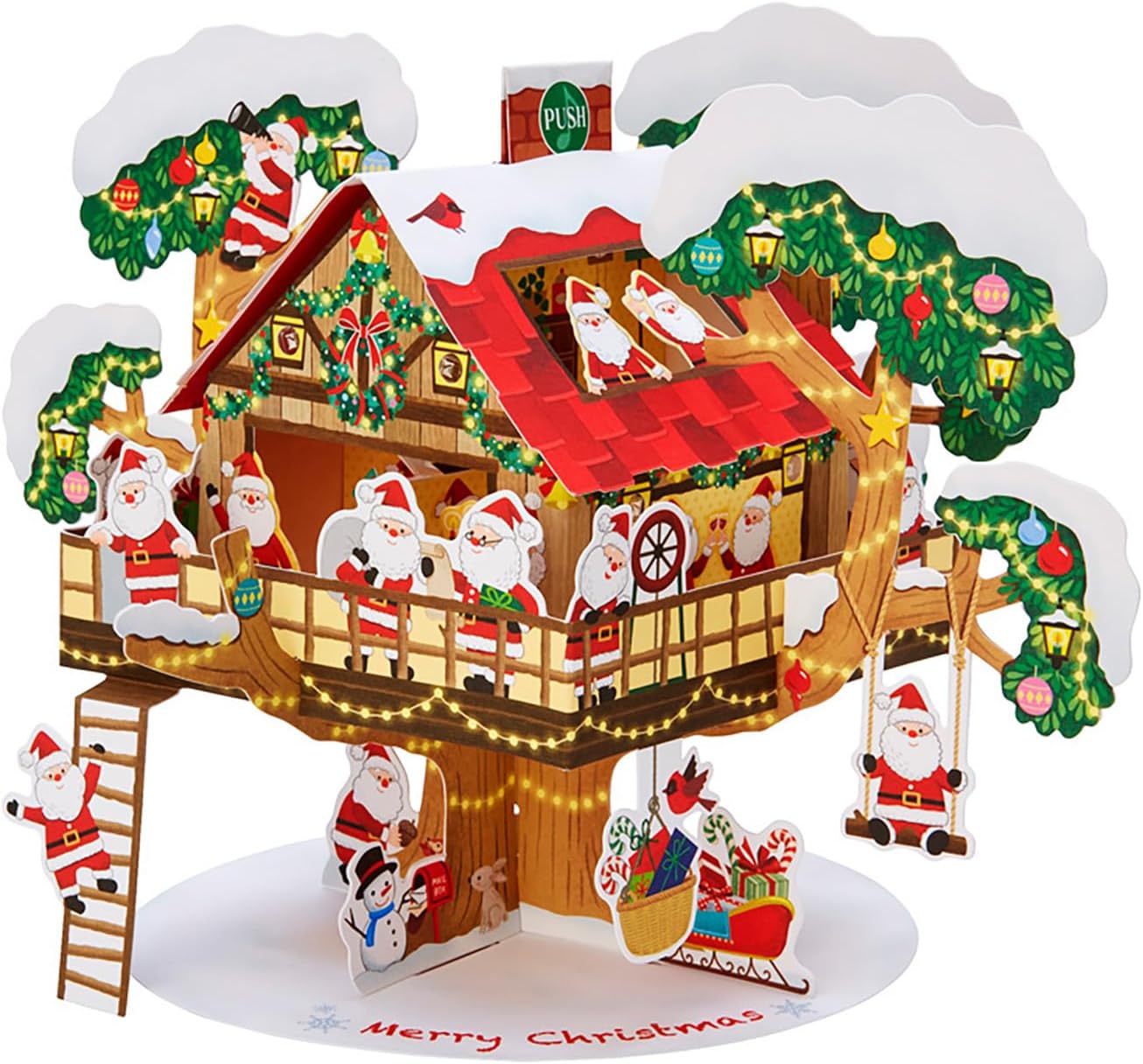 The treehouse with balcony can be transformed into a three-dimensional form. Designed on all 4 sides and can be enjoyed from any angle of 360 degrees, such as Santa to toast or Santa playing musical instruments, or Santa to exchange gifts.