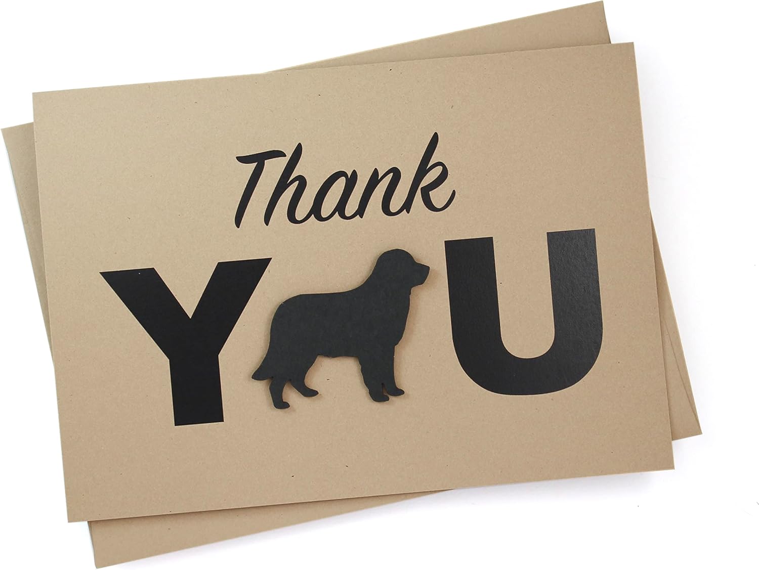 German Shepherd Dog Thank You Greeting Cards Pack of 10 Kraft Brown 5x7 size Handmade with Envelopes. FEATURES-GSD silhouette laser die-cut from black cardstock and attached with foam adhesive to add dimension-Card base made with 80 lb cardstock-Handmade in Minnesota, USA DETAILS-Front: Thank You-Inside: Blank-Colors: Brown card base and envelope -Size: 7 in x 5 in (A7) -Quantity: 10 cards and 10 envelopes