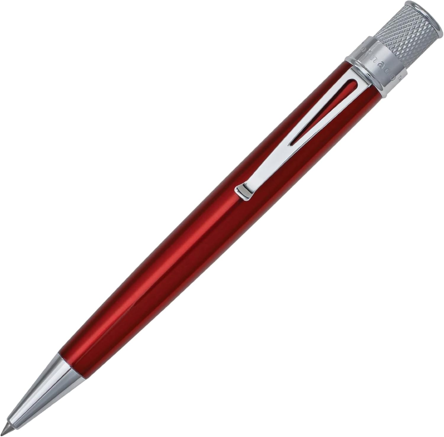 Retro 1951 Tornado Classic Lacquer Roller ball Pen. The classic lacquer Tornado roller ball pen by Retro 1951 features a stainless steel barrel overlaid with a high gloss metallic lacquer, chrome accents, and a trademarked knurled twist top for easy extension and retraction of the smooth flowing roller ball ink refill (Retro item# REF5P). This pen can be converted to a ballpoint by using an Easy Flow 9000 (REF71) or Parker style refill. Packaged in a sturdy graphic tube that doubles as a pen stand, the Tornado is backed by a limited 1 year warranty. Pen measures 5-Inch in length and 0.35-Inch in diameter at the grip section. The Tornado line of writing instruments are renowned in the world of fine writing for their high quality, stylish features, and amazing writing experience at an affordable price. These combined characteristics make it a great gift for any occasion, be it Mother's or Father's Day, a graduation or birthday, or even a business promotion. Treat yourself to one as well, and we think you will agree that "this Pen will Blow you Away!" For over twenty years, Retro 1951’s mission has been to bring fashion, fun, and value to the world of writing instruments. They strive to bring the best quality designs to you by producing each product with the finest materials manufactured by skilled craftsmen. It is through constant evolution of style, color, and material construction that Retro 1951 proudly reminds you, Life is too short to carry an Ugly Pen!