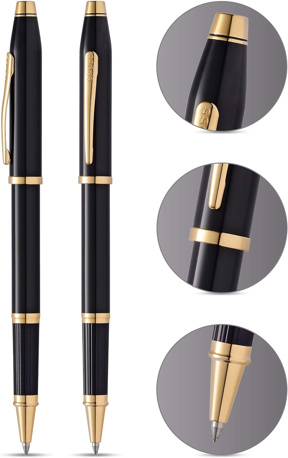 Product Description The Cross brand was founded by jewelry makers and artisans of usable luxury, and has been crafting fine writing instruments for years in the Western world. Today's Luxury Collection is the culmination of this pursuit. It includes four iconic Cross designs in precious metals like silver, gold and platinum as well as beautiful details like inset precious stones. This unique and timeless collection is recognized by its 'X' Authenticity Mark. From the Manufacturer Cross Century II Black Selectip Rolling Ball Pen with 23 Karat Gold Plated Appointments