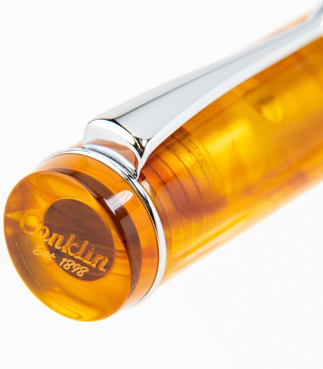 The Conklin Duragraph Voyager Ballpoint Pen is a perfect blend of natural beauty and practical design, handcrafted from richly textured Birchwood and translucent amber European resin. Chrome-plated accents on the clip, band, and trim highlight the premium craftsmanship of this Special Edition. Designed with a smooth twist-action mechanism, this pen delivers effortless writing for both daily and professional use. It includes a free extra black gel refill and is presented in an elegant Conklin gift box—making it a thoughtful and stylish holiday or executive gift.