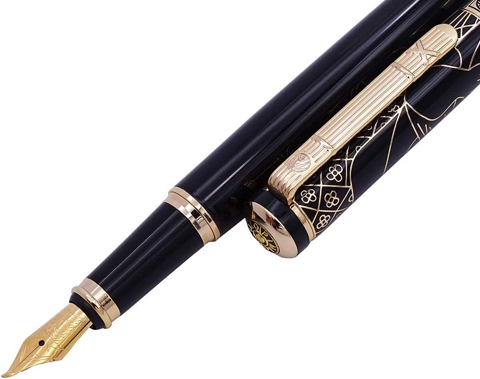 Pure black, blue, sliver holder, gilded solid relievo, black glided relivo and cameleon red are for the fantastic and elegant facial expressions of father, and the attractive evening dress of British gentlemen. The curve at the pen tip is graceful, like an elegant gentleman, the outstanding caving and solid engraving craftwork is restrained and profound, so all flamboyance and emulsion instantly become pale and weak. The collection is specially made for commemorating Picasso’s father, and the signature on the top cap adds more gentleman temperament. Item Details: Nib: Fine to Broad (special stainless steel with gold plated ) Material : Brass Length: 138mm Diameter: 11-13mm Pen Weight: 38g Cap: push type