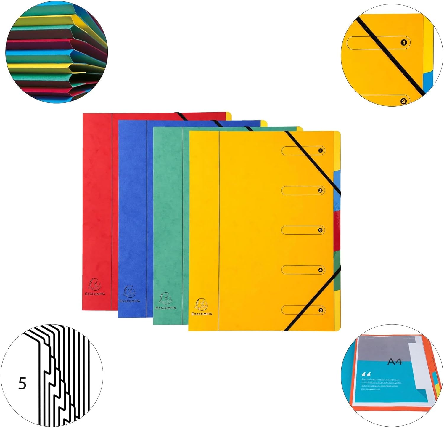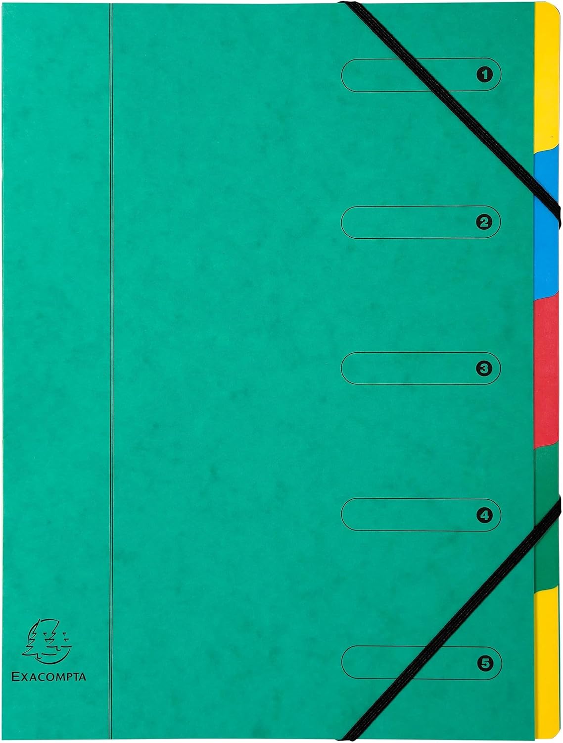 Exacompta Ref - 5205E Harmonika Multipart File, 24.5x32cm for A4 Sized Documents, 5 Tabbed Sections, Expandable Spine, Premium Pressboard Covers with Multi-Coloured Tabs, pack of 8. 24.5x32cm in size for A4 documents with an expanding spine and elastic closures to keep the contents safe and secure. Made from a premium pressboard cover with bright coloured tabs. Holds up to 250 sheets of paper. The multipart file has 5 sections with printed windows and space for writing. FSC certified, made from a sustainable source and recyclable. This multipart file is ideal for organising all sorts of paperwork. The material used to make this folder is hardwearing and ensures all documents are safe and secure and can be sectioned easily. These multipart files are ideal for the home, office, school and university environment. FSC Certified (Forest Stewardship Council) is an independent organisation which promotes the responsible and sustainable management of global forests to meet the needs of present and future generations. This product is also ISO 9706 certified. ISO 9706 is a standard that measures and guarantees against ageing. All ISO 9706 certified filing and archiving products are guaranteed for 100 years.