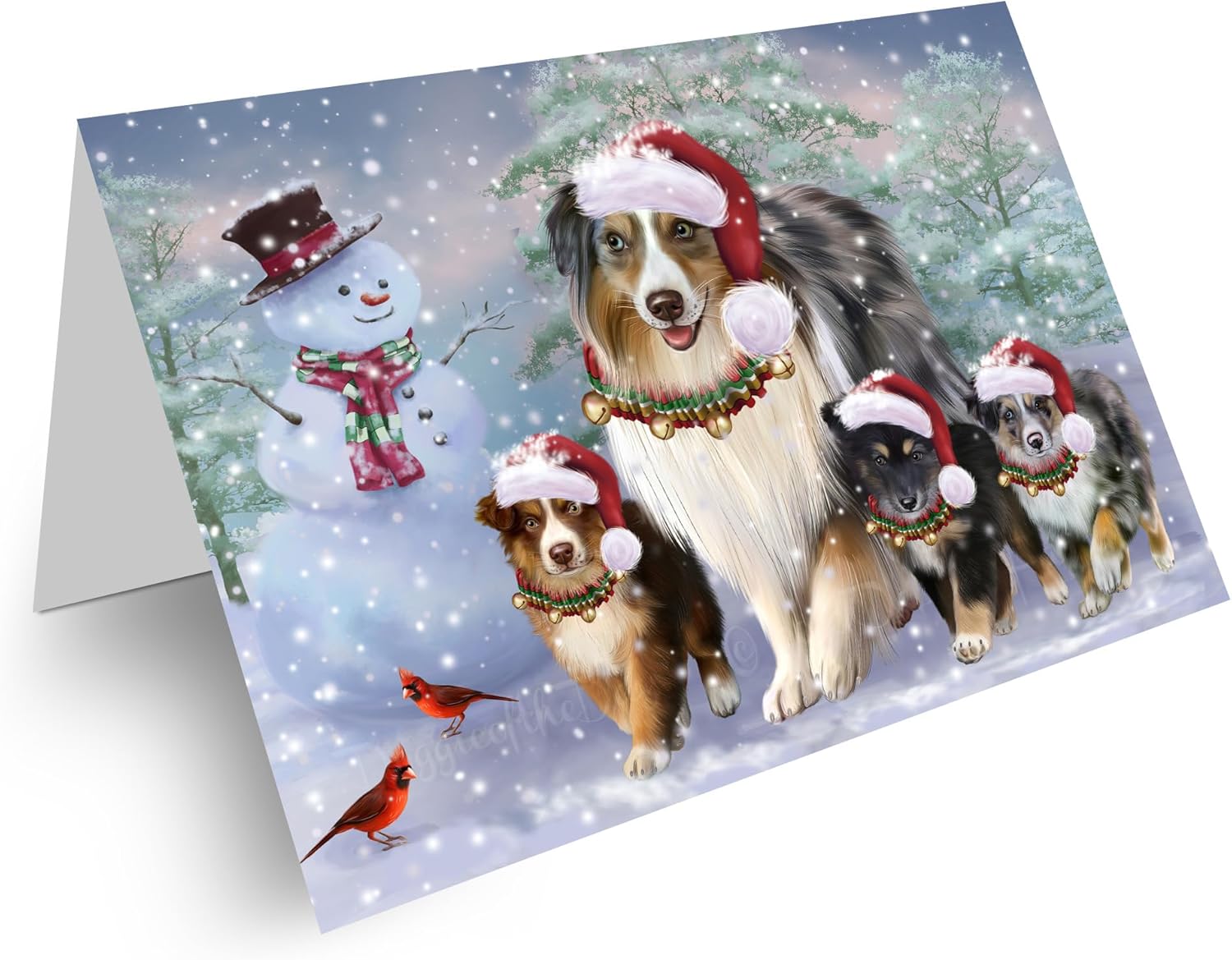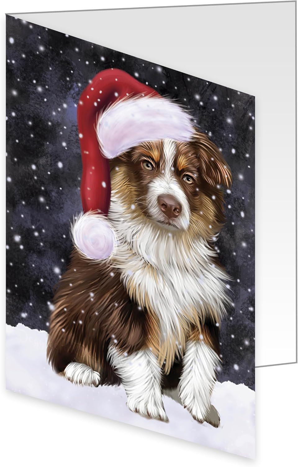 Introducing Our Australian Shepherd Dog Greeting Cards with Envelopes! Celebrate the holiday season with our exquisite Australian Shepherds Dog Christmas Cards. Crafted on premium, eco-friendly cardstock, these cards showcase vibrant colors and intricate details that truly make them stand out. Measuring at 5 x 7 inches for the Christmas greeting cards and 5.5 x 4 inches for the note cards, each set offers a variety of designs to suit all your festive needs. Inside the cards are blank, providing you with the perfect canvas to pen down your own personalized messages of gratitude and warm heartfelt sentiments to be sent out with love. Each card is accompanied by small envelopes, ensuring your holiday wishes are delivered in style. Key Features: Stylish, vibrant designs that capture the spirit of the season. Blank inside so you can write purposeful and meaningful messages. Printed on high-quality paper stock for a luxurious feel. Each Christmas card is paired with an envelope for a complete gifting experience. Personalize and customize your messages anytime to add that extra personal touch. Smooth, flawless surfaces inside every card for easy writing. Suitable for a wide range of occasions, including Christmas, Mother’s Day, Father’s Day, and more. We take great pride in our dog-themed Christmas cards in bulk, and we're confident you'll love them just as much. However, if for any reason you're not completely satisfied with your purchase, please do not hesitate to contact us. We offer a full refund or replacement, ensuring your satisfaction is our top priority. Bring a touch of canine charm to your holiday cards greetings, and let your loved ones know you're thinking of them with our extraordinary Australian Shepherd Dog Greeting Cards.