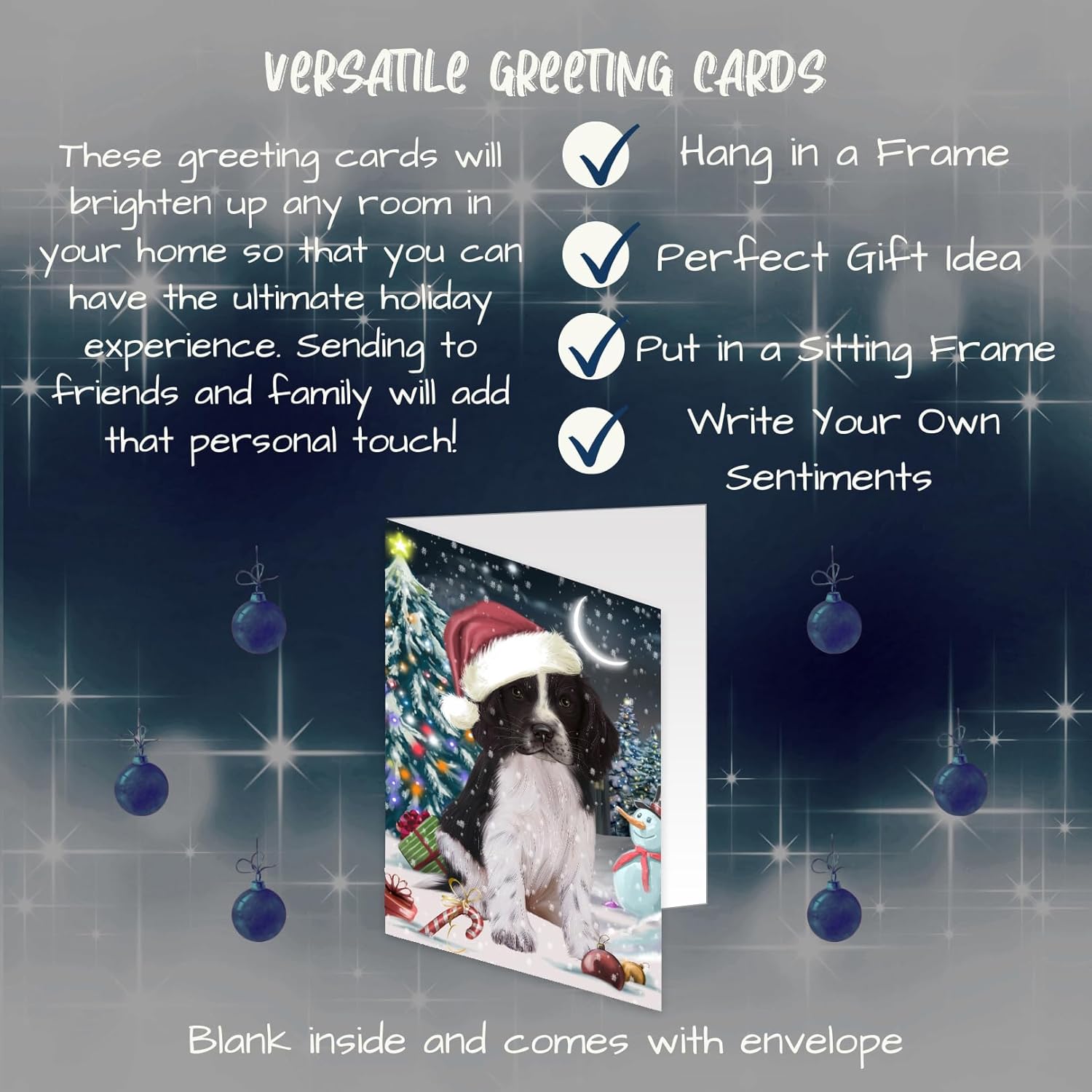 Introducing Our Dog Greeting Cards with Envelopes!Celebrate the holiday season with our exquisite Dog Christmas Cards. Crafted on premium, eco-friendly cardstock, these cards showcase vibrant colors and intricate details that truly make them stand out. Measuring at 5 x 7 inches for the Christmas greeting cards and 5.5 x 4 inches for the note cards, each set offers a variety of designs to suit all your festive needs.Inside the cards are blank, providing you with the perfect canvas to pen down your own personalized messages of gratitude and warm heartfelt sentiments to be sent out with love. Each card is accompanied by small envelopes, ensuring your holiday wishes are delivered in style.Key Features:• Stylish, vibrant designs that capture the spirit of the season.• Blank inside so you can write purposeful and meaningful messages. • Printed on high-quality paper stock for a luxurious feel.• Each Christmas card is paired with an envelope for a complete gifting experience.• Personalize and customize your messages anytime to add that extra personal touch.• Smooth, flawless surfaces inside every card for easy writing.• Suitable for a wide range of occasions, including Christmas, Mother’s Day, Father’s Day, and more.We take great pride in our dog-themed Christmas cards in bulk, and we're confident you'll love them just as much. However, if for any reason you're not completely satisfied with your purchase, please do not hesitate to contact us. We offer a full refund or replacement, ensuring your satisfaction is our top priority.Bring a touch of canine charm to your holiday cards greetings, and let your loved ones know you're thinking of them with our extraordinary Dog Greeting Cards.