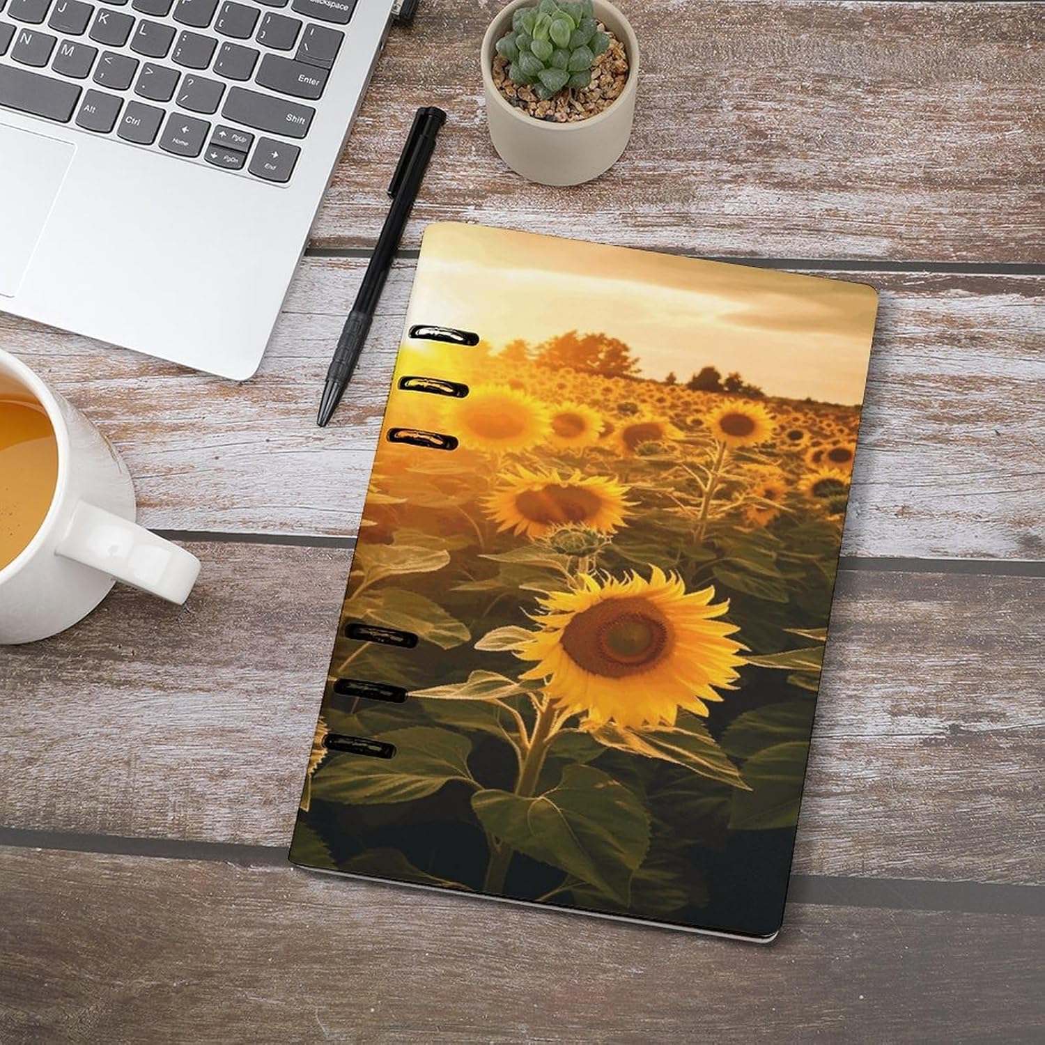 Experience the perfect blend of style and functionality with this leather Sunshine Sunflower Field notebook.Featuring a premium PU leather exterior paired with smooth copy paper,it delivers a refined aesthetic that elevates any workspace.As a personalized loose-leaf notebook,it offers a classic notebook appeal with a retro loose-leaf notebook twist,ensuring it stands out for its elegant craftsmanship.The design focuses on practicality,making it a reliable companion for creative note-taking sessions without compromising on portability or ease of use.The innovative stainless steel clasp ring defines this Sunshine Sunflower Field notebook with stainless steel clasp ring,providing an expandable system that lets you customize your setup by adding dividers or supplementary pages effortlessly.This feature transforms it into a versatile creative notebook,ideal for dynamic tasks like project planning or daily organization.With a generous notebook with 90 sheets,you'll enjoy ample space for writing,sketching,or journaling,while the 180-degree lay-flat design ensures comfortable,crease-free use.Adaptable to a wide range of activities,this daily planning Sunshine Sunflower Field notebook excels in scenarios like business meetings,artistic drawing,or office note-taking.As a project planning notebook,it supports structured workflows,while the journals notebook aspect makes it a heartfelt gift for friends or family.The retro loose-leaf notebook charm combined with its personalized loose-leaf notebook flexibility ensures it meets diverse user preferences,fostering creativity and efficiency in everyday life. Read more