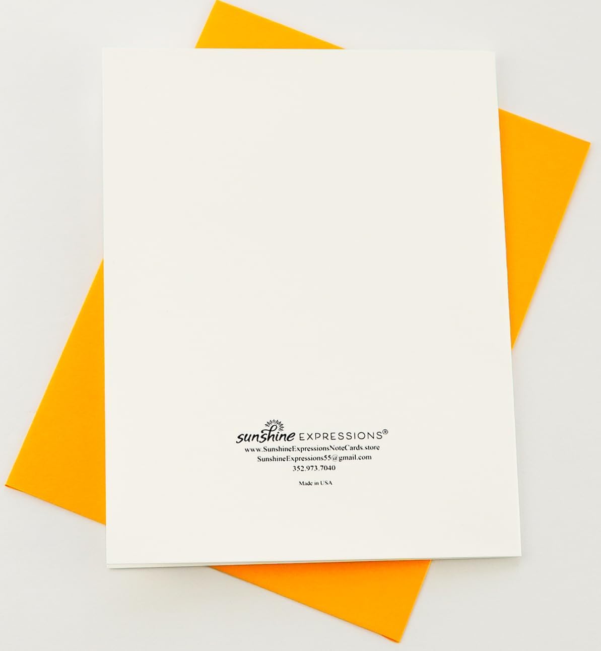 Our elegant note cards are perfect for all occasions. Cards and envelopes are packaged in a plastic jacket for protection and storage. Each note card is printed on 216 gsm high quality and durable card stock and envelopes are 140 gsm + for durability. Our note cards feature better writing surface. The writing surface is smooth and takes to pen beautifully - no smudging or streaking. The ample blank surface is large enough to express your feelings. One size fits all and is suitable for any situation, age, and gender. Why choose Sunshine Expressions Note Cards? Made in the USA. We won't be satisfied until you are. We stand behind our products. If, for any reason, you are not satisfied with the purchase, contact us right away and we will make every effort to make it better. In the box: 16 blank note cards and 18 color coordinated envelopes. ***Please note this is a variety pack. You will receive 4 cards of each design.