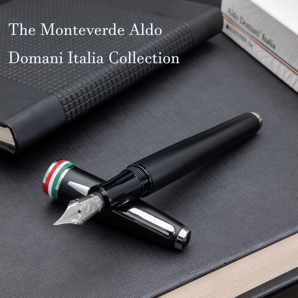 Refined and powerful, the Monteverde USA Aldo Domani Italia Fountain Pen in Matte Black with a Medium Nib delivers a rich writing experience. It features a precision JoWo nib made in Germany and a complete set of writing accessories including a free ink bottle, converter, and cartridges. Crafted by Monteverde USA with over 25 years of excellence, this pen is designed for serious writers and pen lovers. The matte black finish is modern, elegant, and timeless. Comes in a premium gift box—ready for birthdays, work milestones, or graduation gifts.