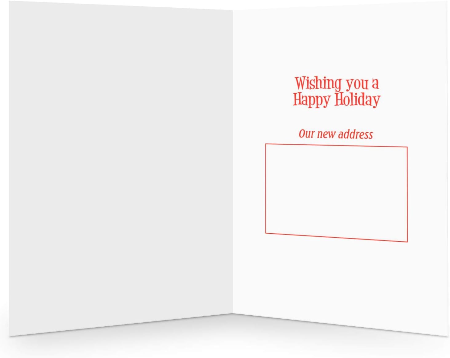 Inside Card: Wishing you a Happy Holiday Our new address Quantity: 24 custome Christmas cards and white envelopes. Send out address announcements & Christmas cards at the same time!! Size: 5x7 folded cards. Glossy finish on front and matte interior