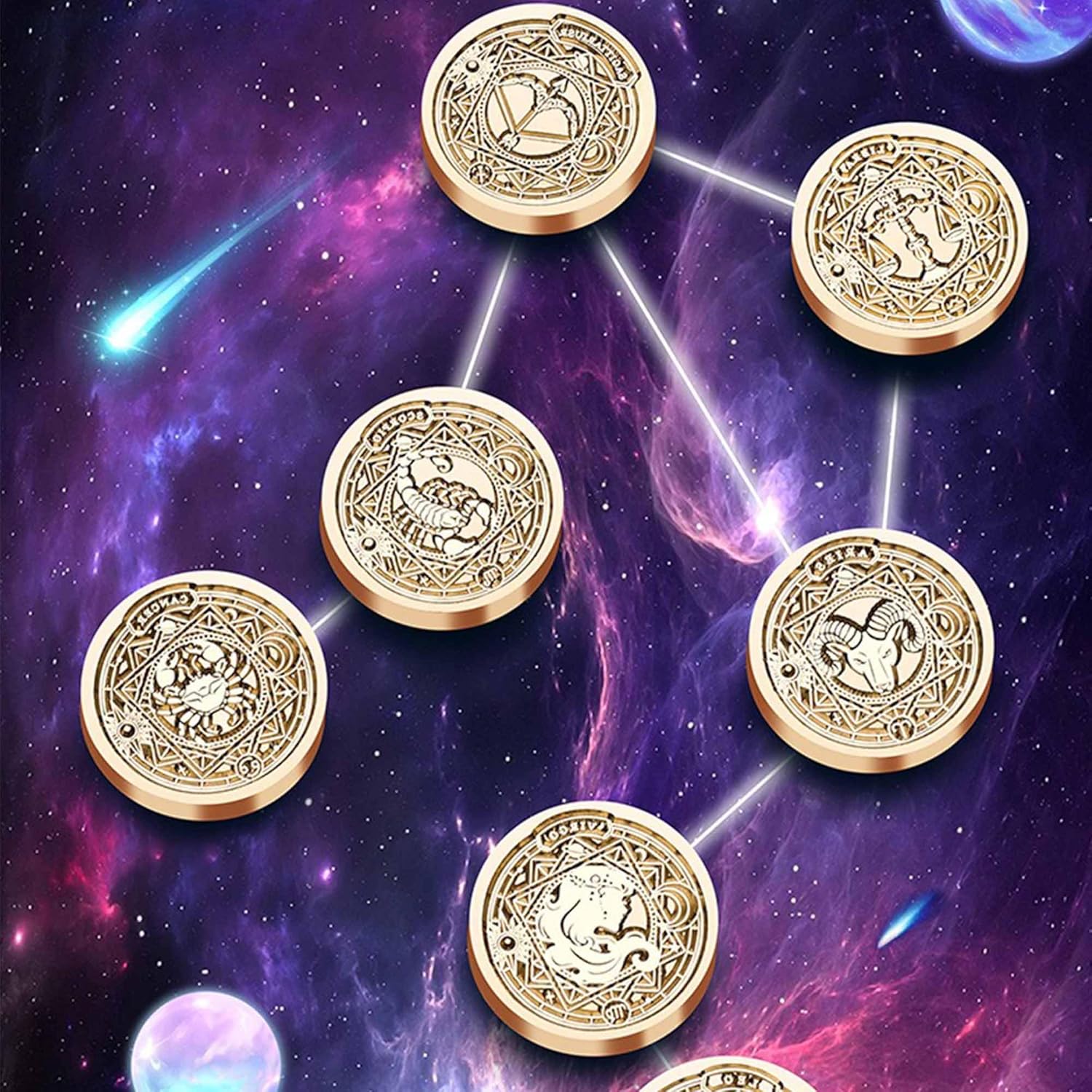Inspired by the mystical signs of the zodiac, this beautiful wax seal features a powerful and vibrant astrological theme. At the center of the seal is an elaborate constellation motif surrounded by geometric lines symbolizing the stars and the universe, with the English names of the constellations clearly engraved. Whether it's to add a unique touch of ceremony to your handwritten letter or to add the finishing touch to your carefully selected gift wrapping, this Astrology Wax Seal Stamp will showcase your personality and taste. How to make a perfect stamp? 1. Place 3 or 4 wax beads in a melting spoon and heat them until just melted. 2. Pour them where they need to be sealed. 3. Quickly place the stamp gently on top (don't press). 4. Once completely cooled, remove the stamp to get a clear pattern. Tip: Please keep the storage place dry to avoid long-term exposure to humid environments, which may cause oxidation of the seal head.