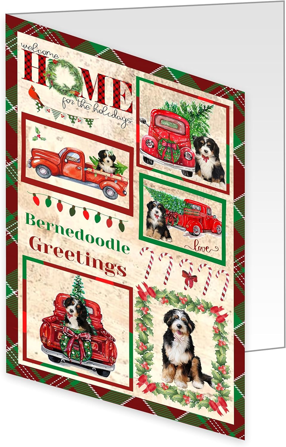 Introducing Our Bernedoodle Dog Greeting Cards with Envelopes! Celebrate the holiday season with our exquisite Bernedoodle Dog Christmas Cards. Crafted on premium, eco-friendly cardstock, these cards showcase vibrant colors and intricate details that truly make them stand out. Measuring at 5 x 7 inches for the Christmas greeting cards and 5.5 x 4 inches for the note cards, each set offers a variety of designs to suit all your festive needs. Inside the cards are blank, providing you with the perfect canvas to pen down your own personalized messages of gratitude and warm heartfelt sentiments to be sent out with love. Each card is accompanied by small envelopes, ensuring your holiday wishes are delivered in style. Key Features: Stylish, vibrant designs that capture the spirit of the season. Blank inside so you can write purposeful and meaningful messages. Printed on high-quality paper stock for a luxurious feel. Each Christmas card is paired with an envelope for a complete gifting experience. Personalize and customize your messages anytime to add that extra personal touch. Smooth, flawless surfaces inside every card for easy writing. Suitable for a wide range of occasions, including Christmas, Mother’s Day, Father’s Day, and more. We take great pride in our dog-themed Christmas cards in bulk, and we're confident you'll love them just as much. However, if for any reason you're not completely satisfied with your purchase, please do not hesitate to contact us. We offer a full refund or replacement, ensuring your satisfaction is our top priority. Bring a touch of canine charm to your holiday cards greetings, and let your loved ones know you're thinking of them with our extraordinary Bernedoodle Dog Greeting Cards.
