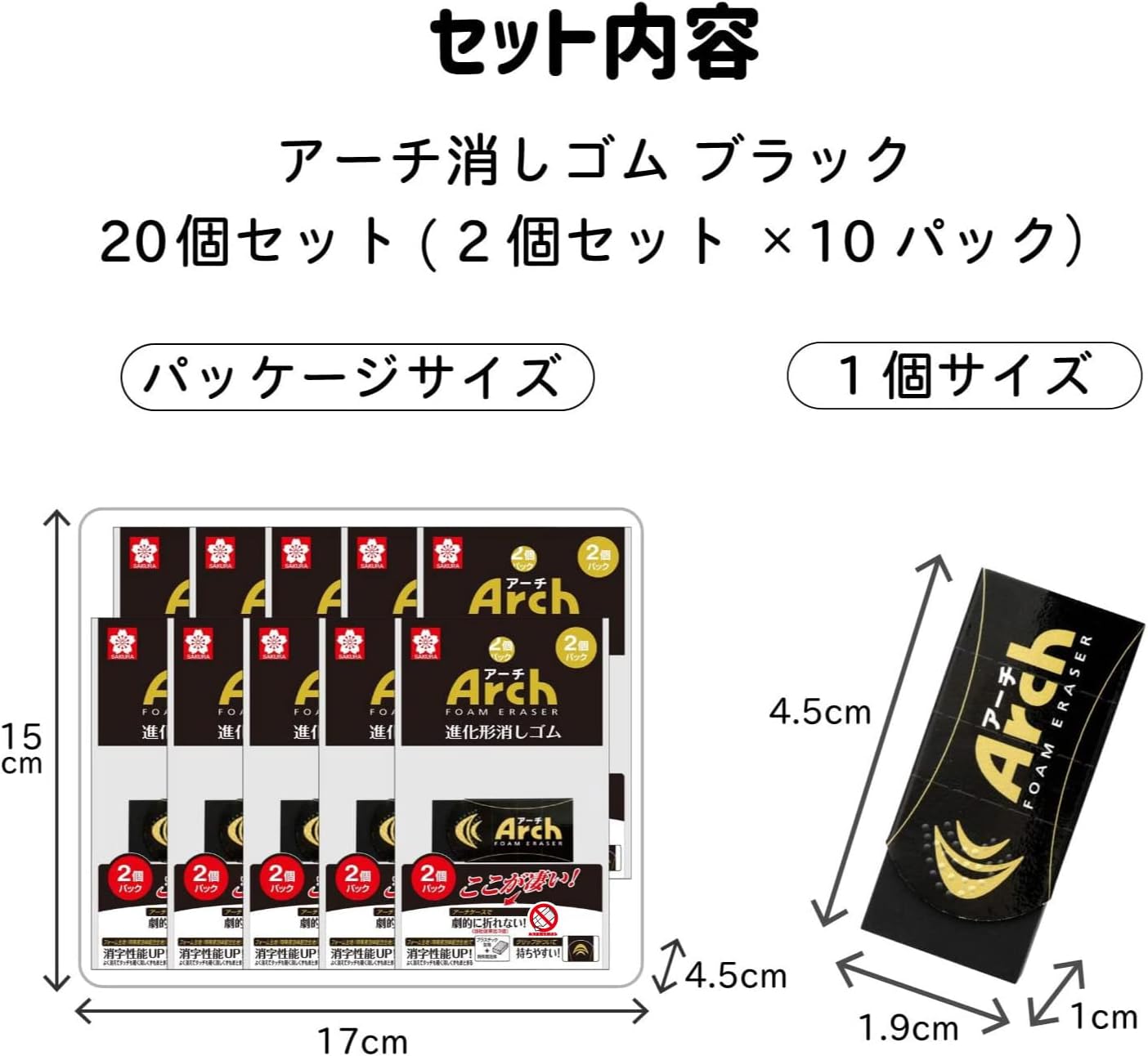 Arch-Eraser Black 60 Size 2P x 10 Set The black body makes dirt difficult to see, and it is easy to see even if it does not disappear on paper. New Shape: Arch case does not break dramatically. The arch shape of the front of the case greatly reduces the load on the bite. New formula: Foam fabric for improved erasing performance. Plastic fabric + special foam = foam fabric New Feel: The grip makes it easy to use. Non-slip, erasable with light force. Buy in bulk and give away items and novelty for kids.