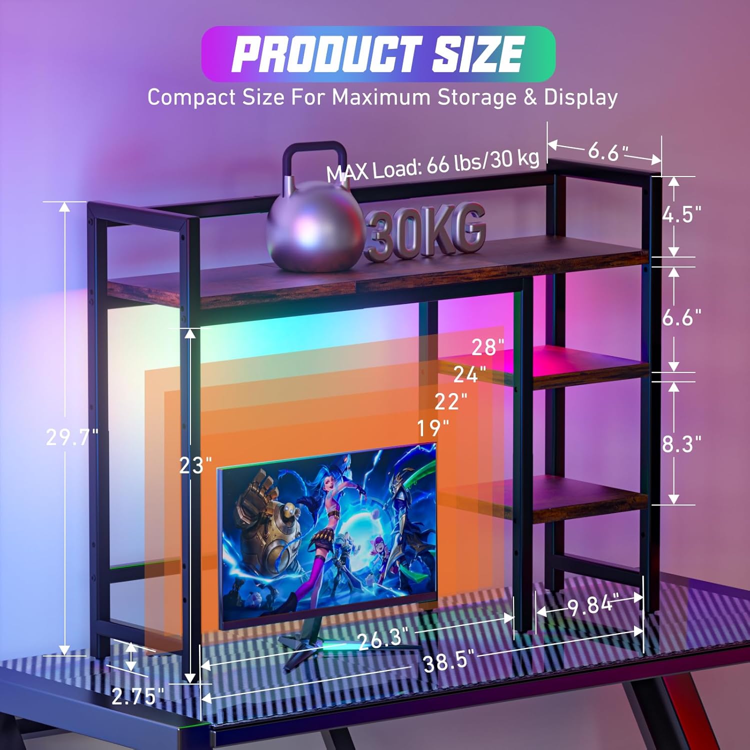 The classic black frame and vintage panels create a minimalist aesthetic that effortlessly blends with your surroundings. Desktop bookshelf perfect for office, study, living room, bedroom, dormitory. Great gift for children, students, family and friends. Paired with a 1-meter-long RGB light strip, it effortlessly creates various atmospheres to suit your mood and is perfect for your gaming desk! Tip: Due to different lights and monitors, there may be slight color differences, please understand!!!!