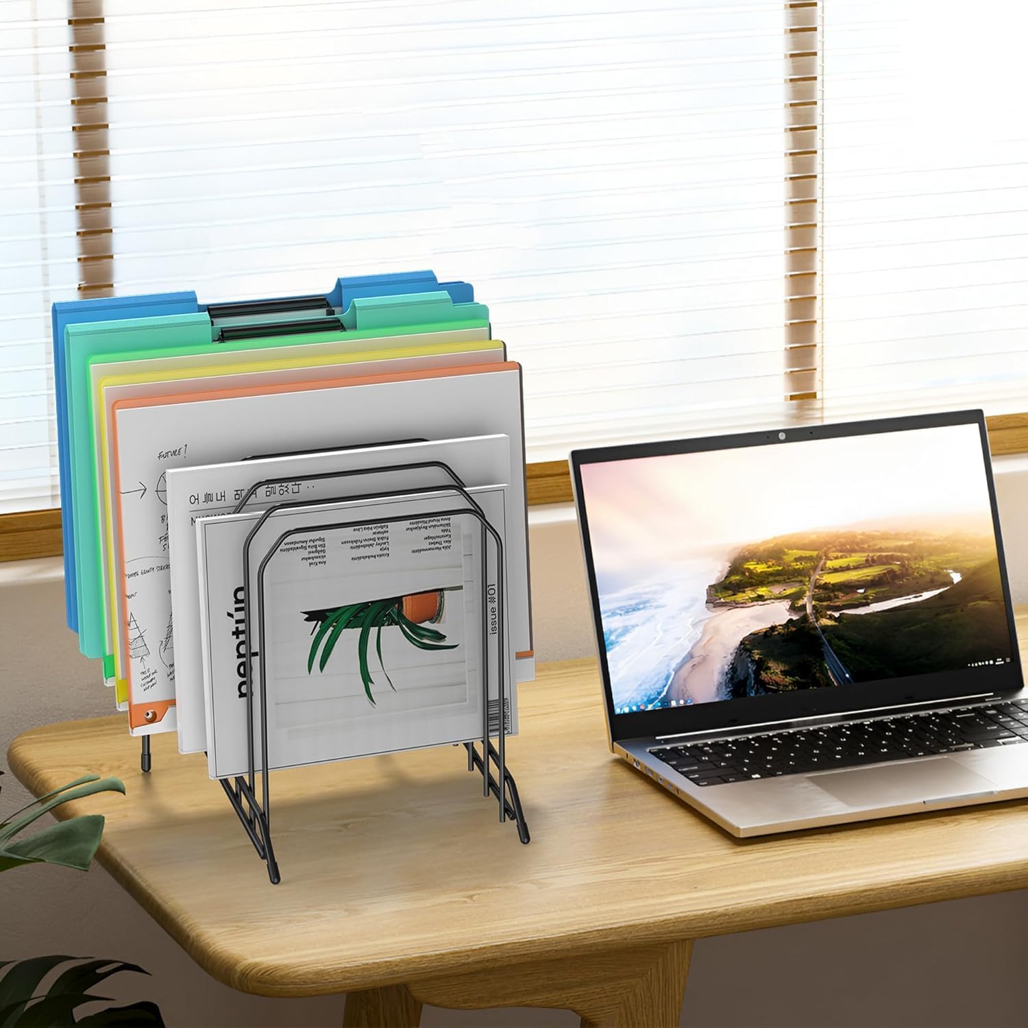 Incline Sorter Desk File Organizer, Metal Desk Magazine Folder Holder with 8-Section Vertical Compartments Rack File Organizer for Office, Home, School