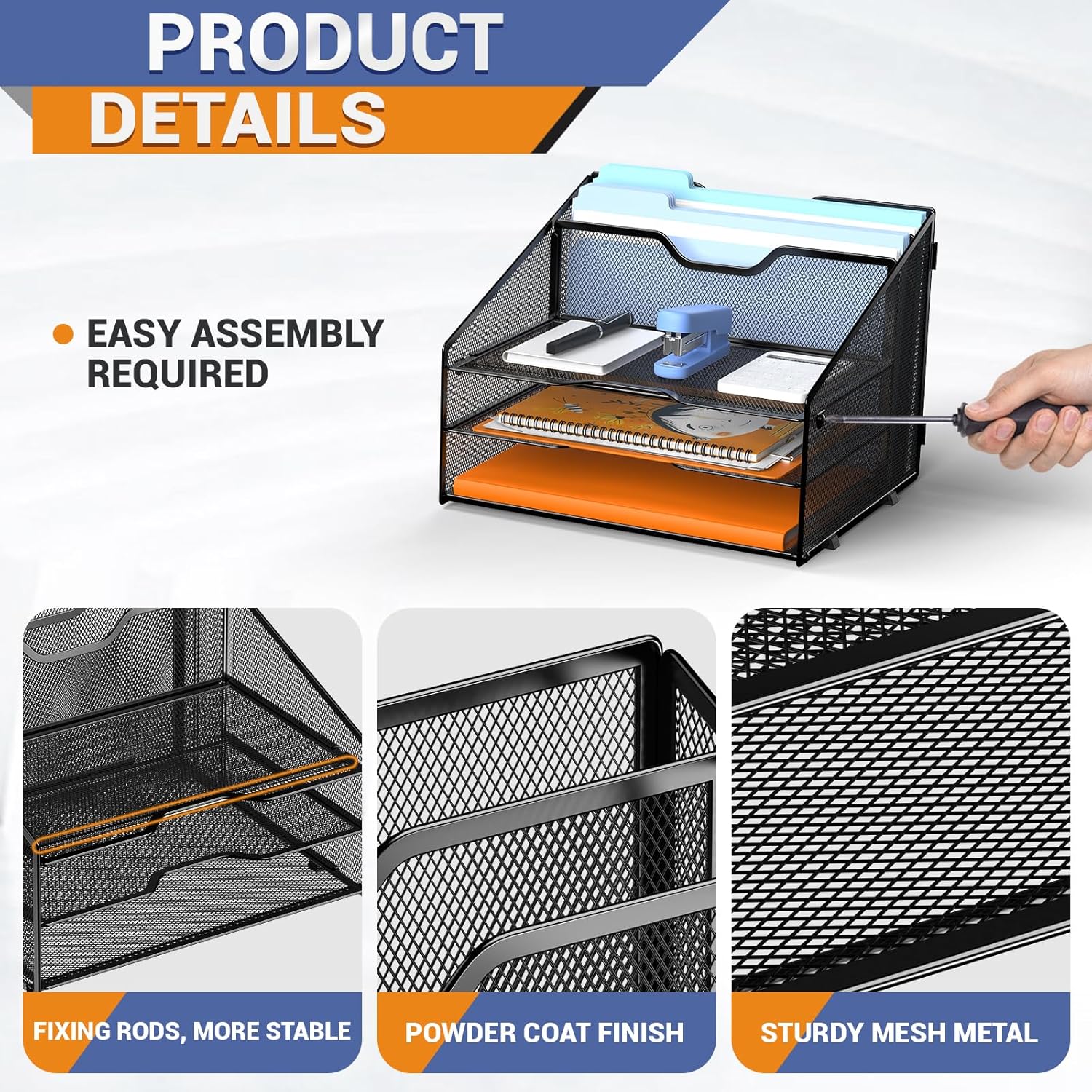 Description:1. Steel mesh produces a reinforced structure while maintaining lightweight constrection.2. Mesh Letter Tray Desk Organizer to keep documents organized.3. Folder organizer for offices and work spaces! Specifications:Color: BlackMaterial: MetalSize: Approx. 12.2"L x 11.4"W x 9.6"HWeight: 1.5 kgPackage List:1 x Desk File Organizer