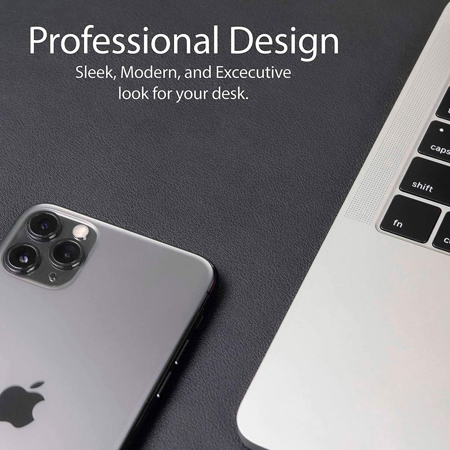 eBigValue Black | Brown Leather Desk Mat Pad – Desk Protector for Office & Home (34 x 20 inches) Upgrade Your Workspace with Executive Style This premium desk pad is ideal for writing, reading, drawing, or as a base for your laptop, keyboard, and mouse. Perfect for anyone who spends significant time at their desk, it offers protection for glass or wooden surfaces against scratches, spills, and stains. At the same time, it enhances your workspace with a stylish, organized, and professional touch. Enjoy comfort and convenience in all your activities—writing, reading, typing, or browsing. High-Quality Vegan Leather Crafted from durable, waterproof, and stain-resistant vegan leather, this desk mat is odor-free and easy to clean. Its sleek, modern design adds sophistication to any desk setup. Spacious Design The generously sized 34 x 20-inch surface accommodates your laptop, keyboard, mouse, journal, sketchbook, and other essentials, making it perfect for multitasking. No Separate Mouse Pad Required This leather desk mat doubles as a mousepad, offering a smooth, friction-free surface that works perfectly with any mouse for a seamless user experience. Convenient Side Panels Flip-open side panels are designed to securely hold blotter paper, keeping it neatly in place. Non-Slip Backing The anti-slip felt bottom ensures the desk pad stays firmly in place during use, preventing unnecessary movement. What’s in the Package: 1 x Leather Desk Pad – Executive Desk Surface Protector for Writing