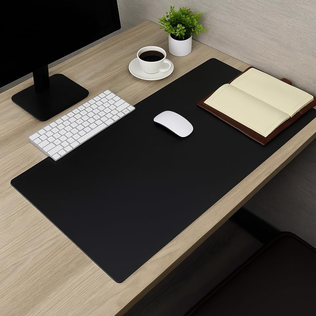 Elevate your workspace with this luxurious top-grain leather desk pad, designed to bring timeless style and professional elegance to any office. Measuring 30x19 inches, it features a durable rigid core, soft felt backing, and a sleek rail-less design for a clean, polished look. The rich classic black leather offers a premium writing surface while protecting your desk from scratches and wear. Crafted by Dacasso with exceptional attention to detail, this desk pad is built to last and can even be customized with your organization's logo for a branded, executive touch.