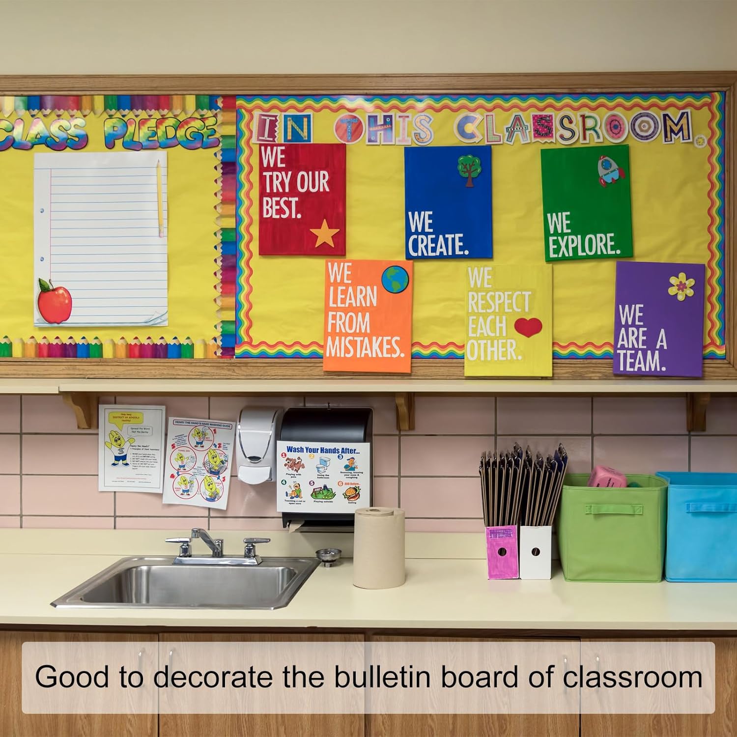 These bulletin board borders can be used in various settings and applications. Whether you are a teacher looking to decorate your classroom, a parent wants to create a fun and educational display at home, or an office professional aiming to add a touch of creativity to your workspace, our scalloped Dark Green paper borders are a good solution. They are good for classrooms, daycare centers, offices, libraries, and other educational or work environments.SpecificationMaterial: Corrugated PaperType: No Adhesive(Prepare Adhesive Yourself)Color: OrangeRoll Total Width: 10cm / 4 inch Roll Length: 50m / 164ft (2 Roll Each 25m)Packing List: 2 Roll x Bulletin Board BorderAdvantageOur bulletin board borders for a bulletin board are designed to enhance the overall aesthetic of your learning environment. The scalloped edges provide a charming and decorative touch, elevating the appearance of your bulletin boards, whiteboards, or cork boards. The colorful color adds energy to any space.InstructionApplying our Bulletin Board Borders is a breeze! Simply measure and cut the desired length, then use adhesive or staples to secure the border trim to your bulletin board, whiteboard, or any other surface. The flexibility of the paper material allows for easy shaping and positioning, ensuring a seamless. It's a quick and effortless way to transform plain boards into eye-catching displays.NOTE: To ensure long-lasting use, handle the bulletin board borders with care during installation and removal. Avoid excessive pulling to prevent ripping or tearing. When removing the borders, gently peel them off to avoid damaging the underlying surface. Store the borders flat or rolled up in a dry place to preserve their shape and quality for future use.