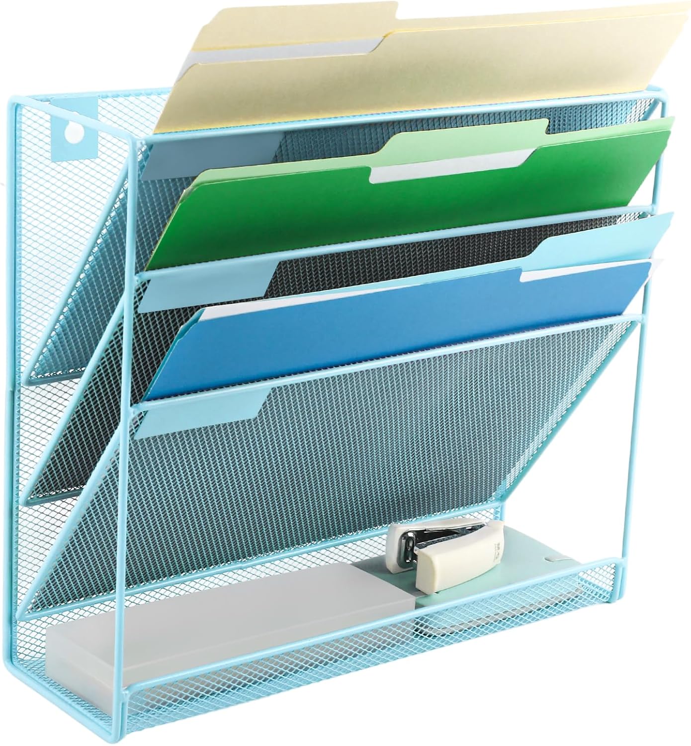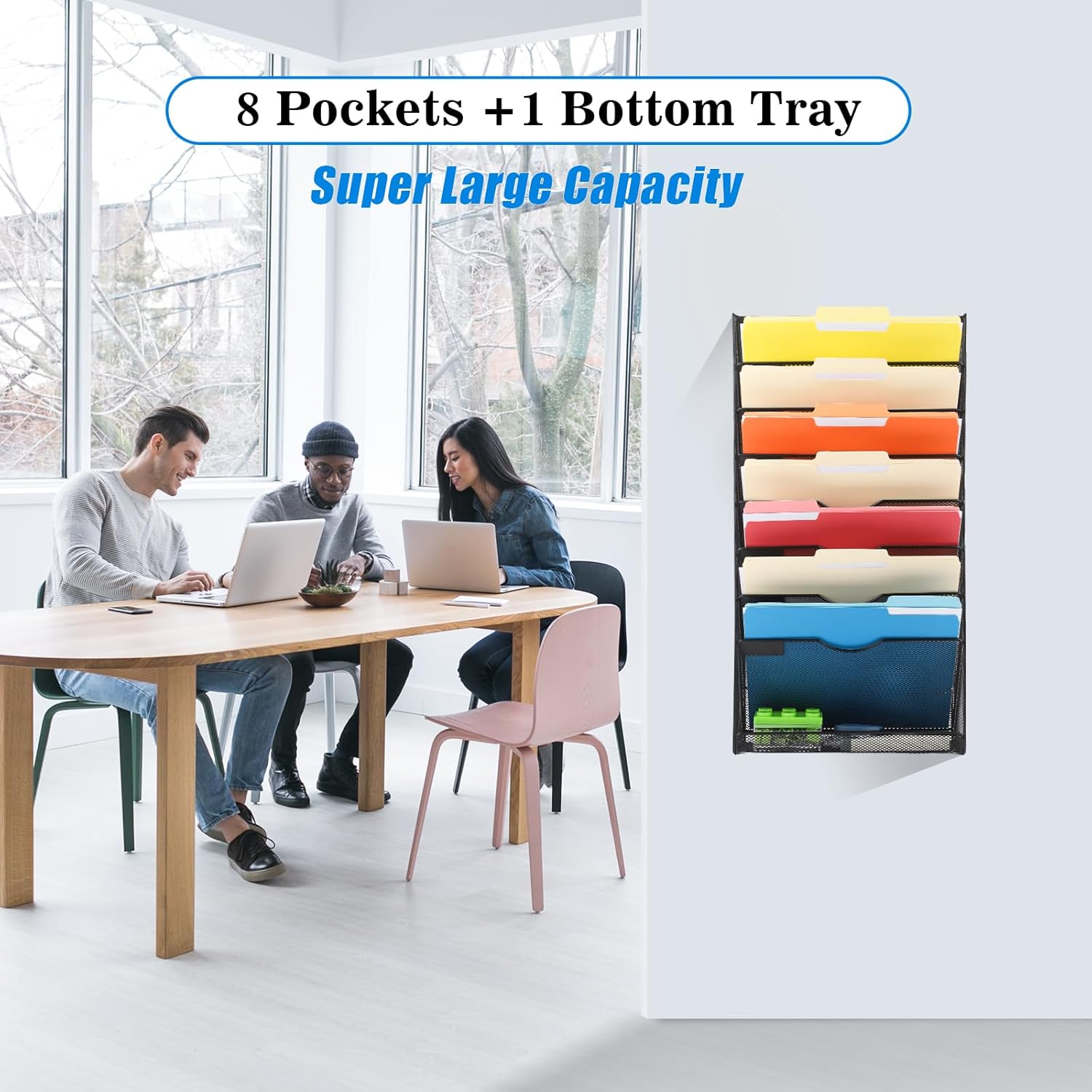 EASEPRES 9 Pockets Metal Wall File Organizer The perfect solution to keep your documents, papers, magazines, and more organized in your office, classroom, or home. This sturdy wall organizer is designed with convenience and functionality in mind, making it an ideal addition to any space. With its 8 spacious pockets, this wall organizer provides ample storage for all your important files and documents. The pockets are designed to hold standard-sized papers, ensuring that everything stays in place and easily accessible when you need it most. Crafted from high-quality metal, this file organizer is built to last. Its sturdy construction ensures long-term durability, so you can trust it to hold all your files securely without worrying about sagging or breaking. The sleek design adds a touch of sophistication to any room, while the neutral color easily blends with any decor style. Installation is a breeze with the included mounting hardware.The compact size allows for easy placement on any wall, saving valuable desk or floor space. This versatile wall organizer isn't limited to just paperwork. It can also hold magazines, brochures, notebooks, and more, making it a multifunctional solution for organizing clutter in your workspace. Whether you're a professional, student, or busy homemaker, this organizer is perfect for keeping your space tidy and efficient. Not just limited to offices, this file organizer is also perfect for classrooms and homes where a centralized organization system is needed. Teachers can effortlessly sort assignments, handouts, and tests, while homeowners can store bills, recipes, and important paperwork. Whatever your needs may be, this wall file organizer has got you covered. So why wait? Invest in the EASEPRES 8 Pockets Metal Wall File Organizer today and experience the convenience and efficiency it brings to your workspace. Say goodbye to messy stacks of papers and hello to a clutte